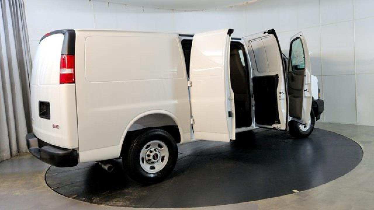 The 2025 GMC Savana Cargo Van combines rugged capability with straightforward utility. It offers up to 239.4 cubic feet of cargo space and a towing capacity of up to 7,400 lb, making it a true workhorse built for commercial demands. Under the hood, there's a 4.3L V6 engine delivering 276 hp and 298 lb-ft of torque. Inside, the van stays focused on function, with cruise control, remote keyless entry, durable rubberized vinyl flooring, tie-downs, reclining bucket seats. Safety features include Bluetooth, forward-collision alert, lane-departure warning and a rear vision camera.