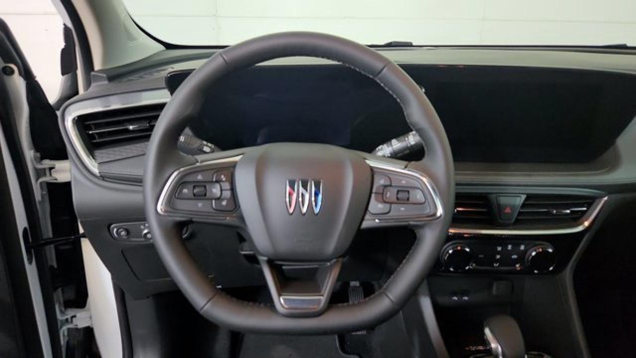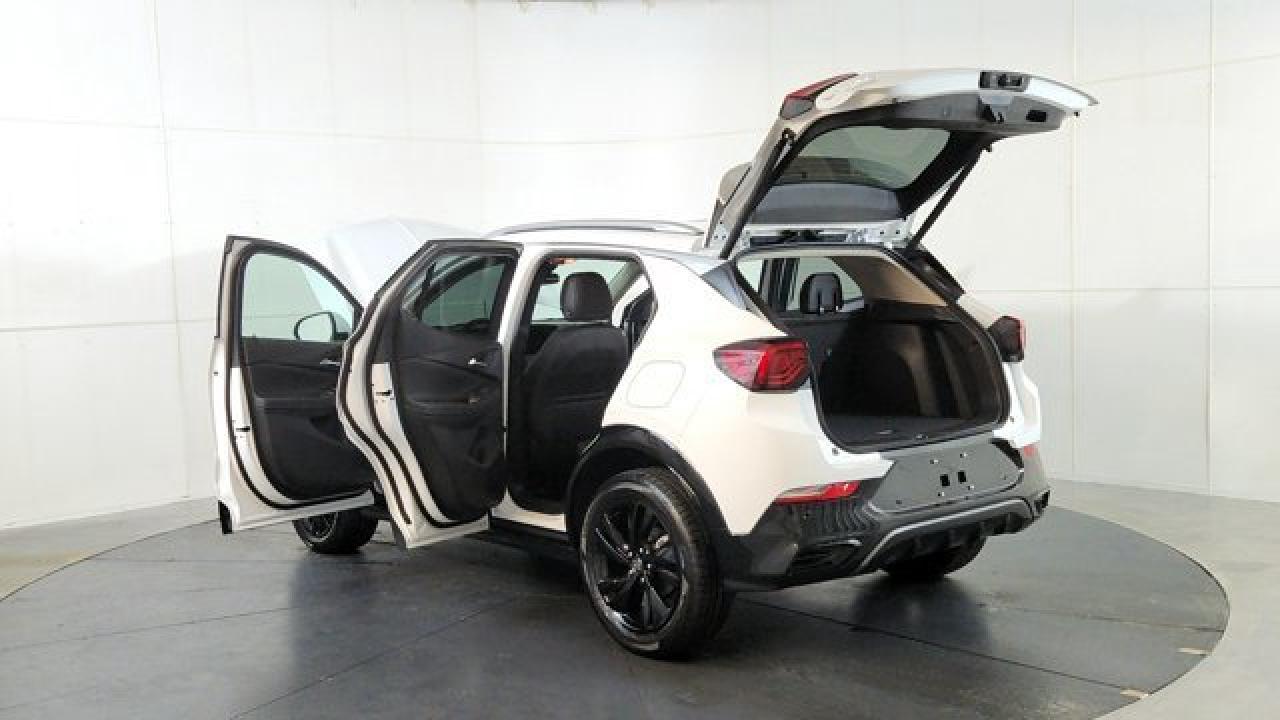 The Encore GX Sport Touring brings a sporty design with gloss-black exterior accents---such as an all-new black grille, black alloy wheels, LED taillamps, and body-color bumpers with unique styling touches. It is powered exclusively by the turbocharged 1.3 L ECOTEC three-cylinder engine (155 hp, 174 lb-ft) mated to a nine-speed automatic and all-wheel drive. Inside, the Sport Touring features leatherette seating with Santorini Blue stitching, an 11'' ultrawide HD infotainment touchscreen supporting wireless Apple CarPlay and Android Auto, adaptive cruise control, rear park assist, HD surround vision and wireless charging.