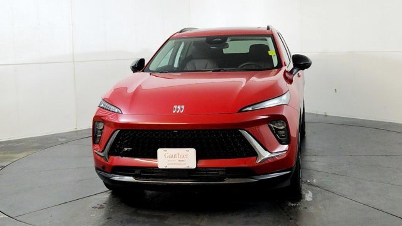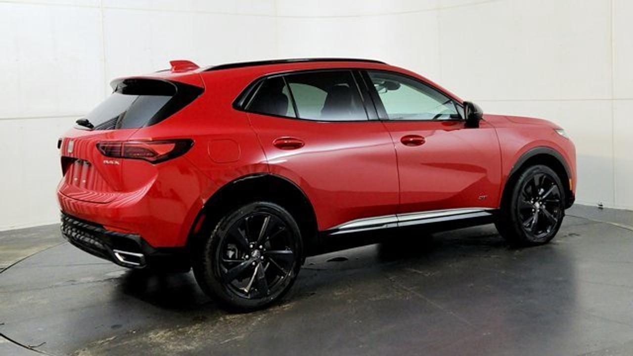 The 2026 Buick Envision Sport Touring delivers athletic styling and premium amenities. It's powered by a 2.0-liter turbocharged 4-cylinder engine paired with a 9-speed automatic transmission and standard all-wheel drive, riding on 20-inch alloy wheels with dark-gloss accents for a more aggressive look. Inside, the cabin features a large 30-inch ultrawide display, heated front seats, a Bose premium sound system, adaptive cruise control, lane-keeping assistance, and a panoramic power moonroof that brings in extra light and openness.