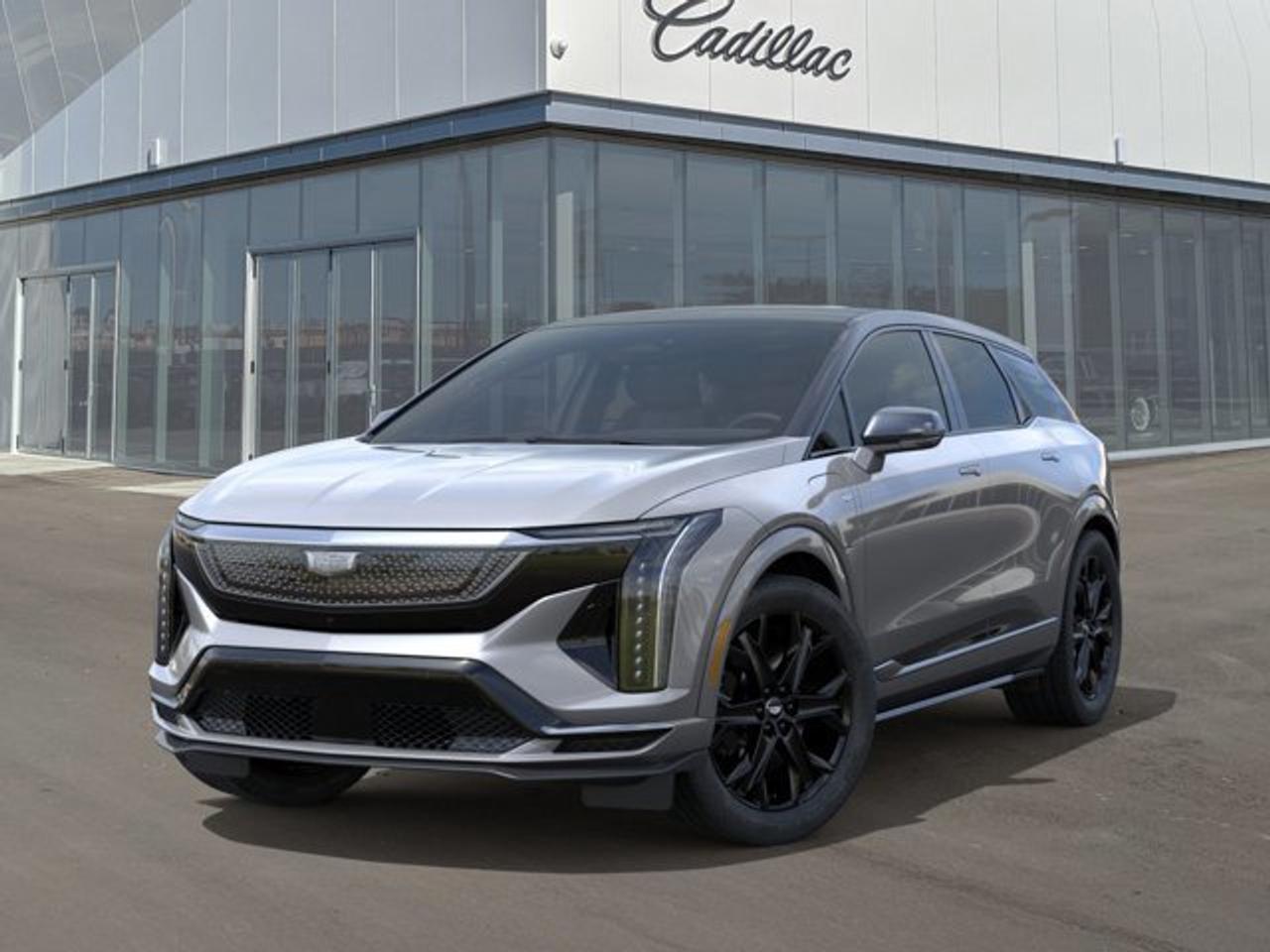 The 2026 Cadillac OPTIQ-V is an all-electric performance SUV in Cadillac's V-Series lineup, pairing a dual-motor all-wheel-drive powertrain with an estimated 519 hp and 650 lb-ft of torque. It combines sporty exterior elements like gloss-black and carbon-fiber accents with Brembo performance brakes, adaptive damping suspension, and a driver-selectable V-Mode for customizable performance settings. Inside, the luxury cabin features a large 33-inch advanced LED display, premium AKG sound with Dolby Atmos, Super Cruise hands-free driving and a suite of modern safety and driver-assist technologies. All of this is built around an EV platform with an estimated 440 km range per charge.