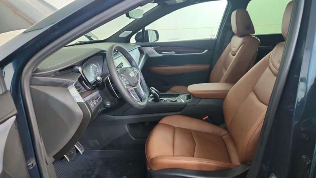 The 2026 Cadillac XT5 AWD Sport is a performance-oriented version of Cadillac's luxury mid-size SUV. It pairs a potent 3.6 L V6 engine with a 9-speed automatic transmission and twin-clutch Sport Control all-wheel drive for stronger acceleration and confident handling. It stands out with sport-tuned suspension (Chassis Damping Control and yaw control), Brembo performance brakes with red calipers, 20-inch 12-spoke alloy wheels, gloss black accents, and premium features like tri-zone climate control and advanced driver-assistance tech for comfort and capability on varied roads. Inside, the Sport trim blends comfort and connectivity with features such as heated/ventilated seats, wireless smartphone integration navigation and safety systems.