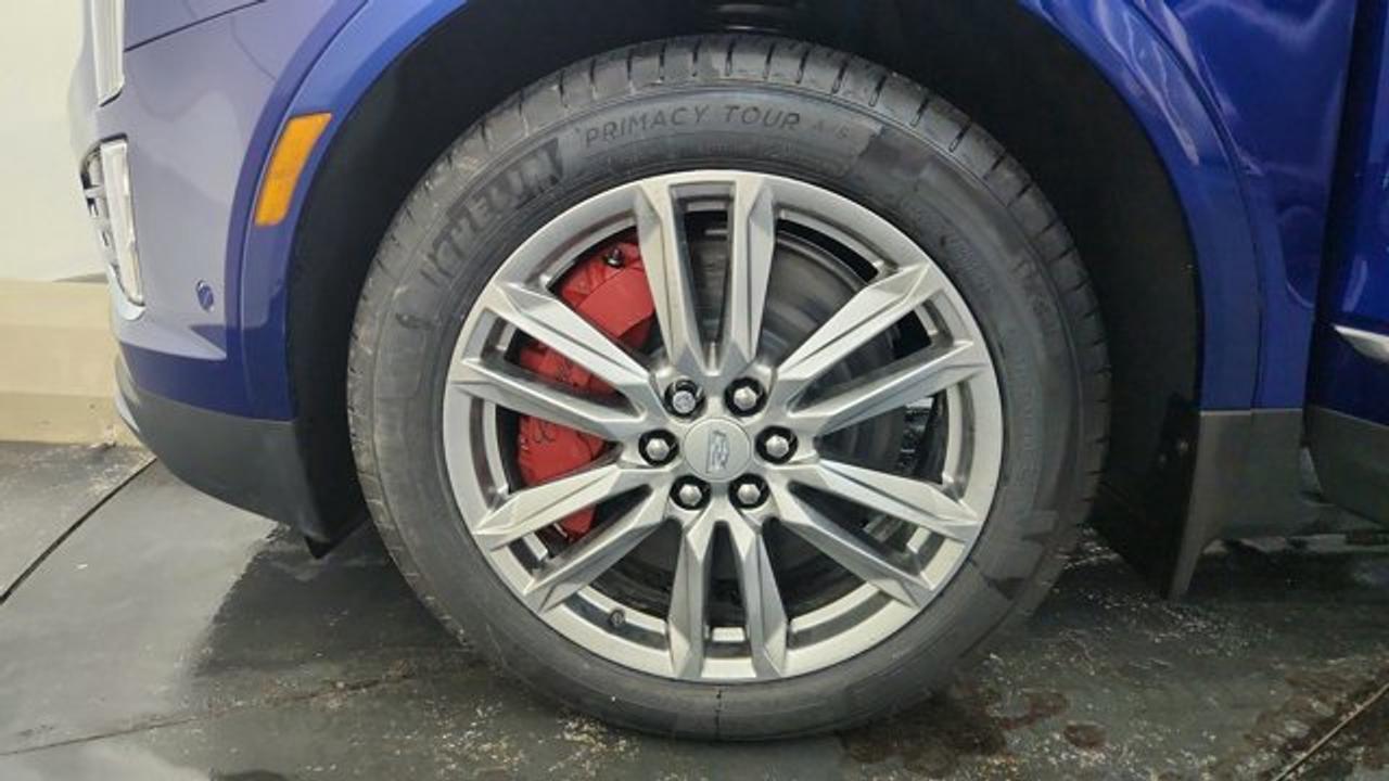 The 2026 Cadillac XT5 AWD Sport is a performance-oriented version of Cadillac's luxury mid-size SUV. It pairs a potent 3.6 L V6 engine with a 9-speed automatic transmission and twin-clutch Sport Control all-wheel drive for stronger acceleration and confident handling. It stands out with sport-tuned suspension (Chassis Damping Control and yaw control), Brembo performance brakes with red calipers, 20-inch 12-spoke alloy wheels, gloss black accents, and premium features like tri-zone climate control and advanced driver-assistance tech for comfort and capability on varied roads. Inside, the Sport trim blends comfort and connectivity with features such as heated/ventilated seats, wireless smartphone integration navigation and safety systems.