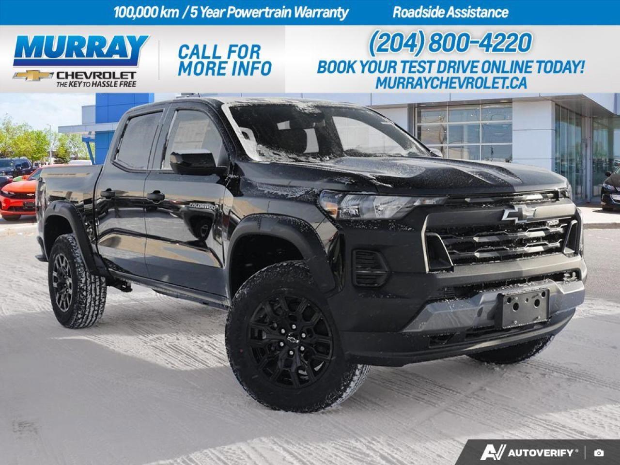 *ENGINE BLOCK HEATER* *JET BLACK EVOTEX SEAT TRIM* *TRAIL BOSS CONVENIENCE PACKAGE II* This 2026 Chevrolet Colorado 4WD Trail Boss is a remarkable Crew Cab Pickup designed for those who value performance and style in Winnipeg. The powerful Turbocharged Gas I4 2.7L engine delivers an impressive 310 hp (231 kW) at 5600 rpm and a robust 430 lb-ft of torque (583 Nm) at 3000 rpm, ensuring you have the power needed for any adventure. Paired with a smooth 8-speed automatic transmission, this truck provides both efficiency and reliability on every journey. The Trail Boss Convenience Package II enhances your driving experience with an 8-way power driver seat, wireless charging, remote starter, and heated front seats. Stay connected and secure with the Technology Package, which includes adaptive cruise control, rear pedestrian alert, and HD surround vision. The stylish exterior is complemented by a spray-on bedliner with the Chevrolet logo, ensuring durability and protection for your cargo. Inside, the jet black Evotex seat trim offers a touch of luxury, while features like the heated steering wheel and advanced smart device integration ensure you enjoy every ride in comfort. The Colorado also comes equipped with essential safety features, including front collision mitigation, lane departure warning, and a blind spot monitor, providing peace of mind on every drive. Dealer Permit #1740