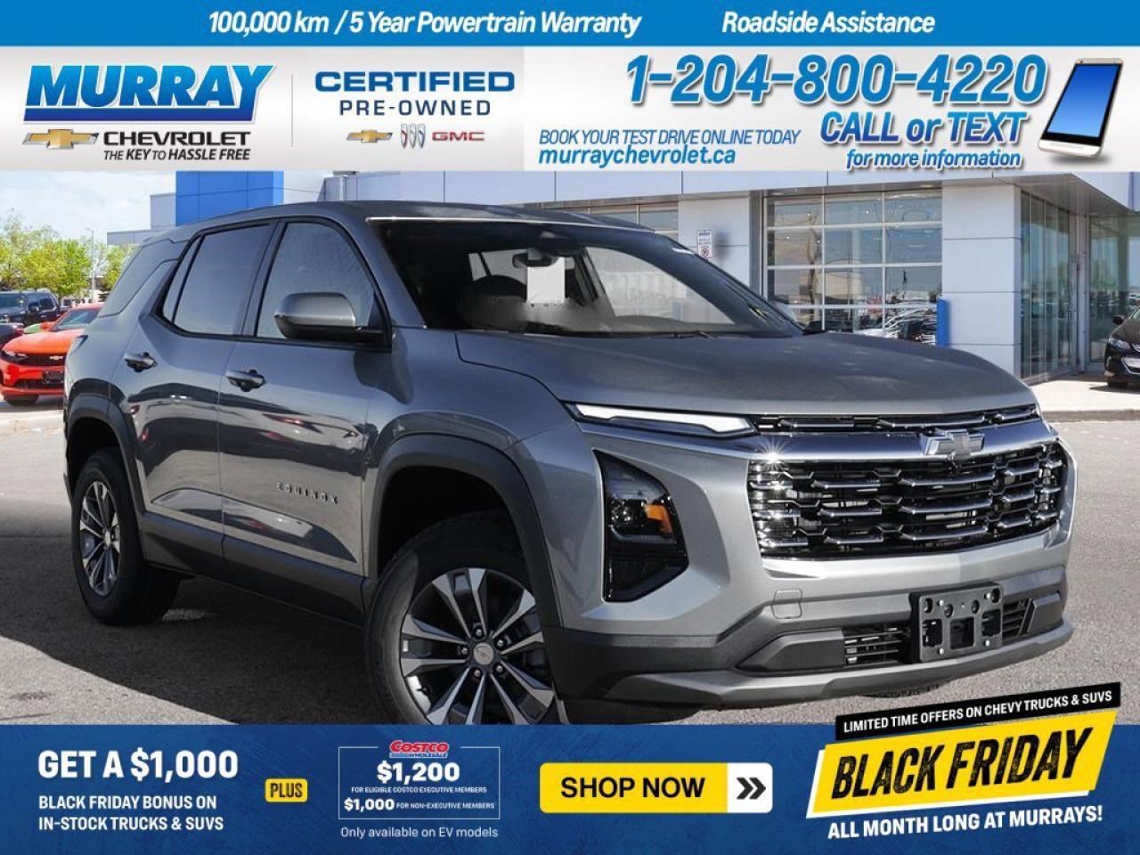 *ENGINE 1.5L TURBO DOHC 4-CYLINDER SIDI VVT (STD)* *TRANSMISSION 8-SPEED AUTOMATIC (STD)* *REMOTE ENGINE START* The 2026 Chevrolet Equinox AWD LT, available in Winnipeg, is a perfect blend of style and performance, ideal for those who seek adventure and comfort. This sport utility vehicles turbocharged engine offers an energetic drive, while the 8-speed automatic transmission ensures smooth and responsive handling. The convenience of a remote engine start enhances your driving experience, allowing you to warm up or cool down the interior before stepping inside. The Equinox stands out with its sleek Sterling Grey Metallic finish, complemented by bold black bowtie emblems on both the front and rear. Inside, youll find black cloth seats that provide a comfortable and stylish environment for both driver and passengers. The heated front seats and steering wheel add an extra layer of comfort during those crisp days. Stay connected and safe with advanced features such as lane departure warning, blind spot monitor, and rear collision mitigation. The Equinox also comes equipped with adaptive cruise control and a WiFi hotspot, ensuring you remain in control and entertained throughout your journey. With cutting-edge safety technology like front and rear parking aids, as well as cross-traffic alert, the Equinox keeps you and your loved ones secure on every drive. Experience the versatility of the Chevrolet Equinox, tailored for your lifestyle whether youre navigating city streets or exploring the open road. Visit us in Winnipeg to discover more about this exceptional vehicle. DisplayTrim: ENGINE 1.5L TURBO DOHC 4-CYLINDER SIDI VVT (STD) Dealer Permit #1740