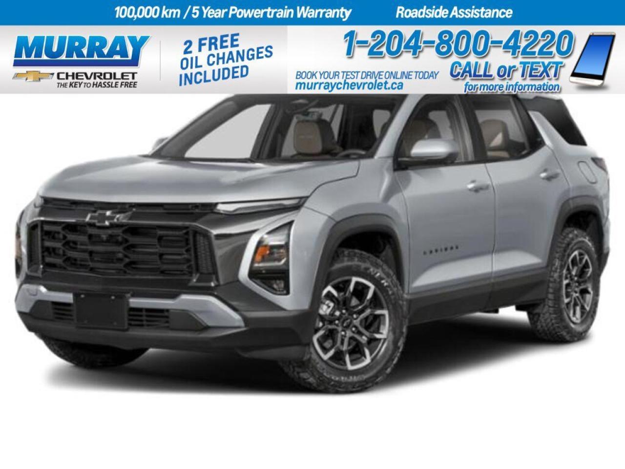 *SUNROOF POWER DUAL GLASS PANORAMIC SLIDING* *ENGINE BLOCK HEATER* *SAFETY AND TECHNOLOGY PACKAGE* Unleash your sense of adventure with the 2026 Chevrolet Equinox AWD ACTIV, a sport utility vehicle that combines style and innovation. Revel in the luxury of a sunroof that stretches across the entire cabin, offering panoramic views and a refreshing breeze at your command. The Sterling Grey Metallic exterior complements the sleek design, ensuring you arrive in style no matter the destination. Under the hood, the Equinox is powered by a responsive 1.5L Turbocharged DOHC 4-Cylinder engine, perfectly paired with an 8-speed automatic transmission for smooth and efficient performance. Whether youre navigating the urban landscape or exploring the open road, the all-wheel drive system provides enhanced traction and control for a confident driving experience. Inside, the Equinox is a haven of comfort and convenience. The Convenience Package III elevates your journey with features such as ventilated front seats and heated rear seats, ensuring everyone travels in comfort. Stay connected and safe with the Safety and Technology Package, which includes advanced features like Rear Camera Mirror and HD Surround Vision for peace of mind. From the advanced engine to the luxurious interior, the Equinox is ready to accompany you on all your adventures in and around Winnipeg. DisplayTrim: SUNROOF POWER DUAL GLASS PANORAMIC SLIDING Dealer Permit #1740