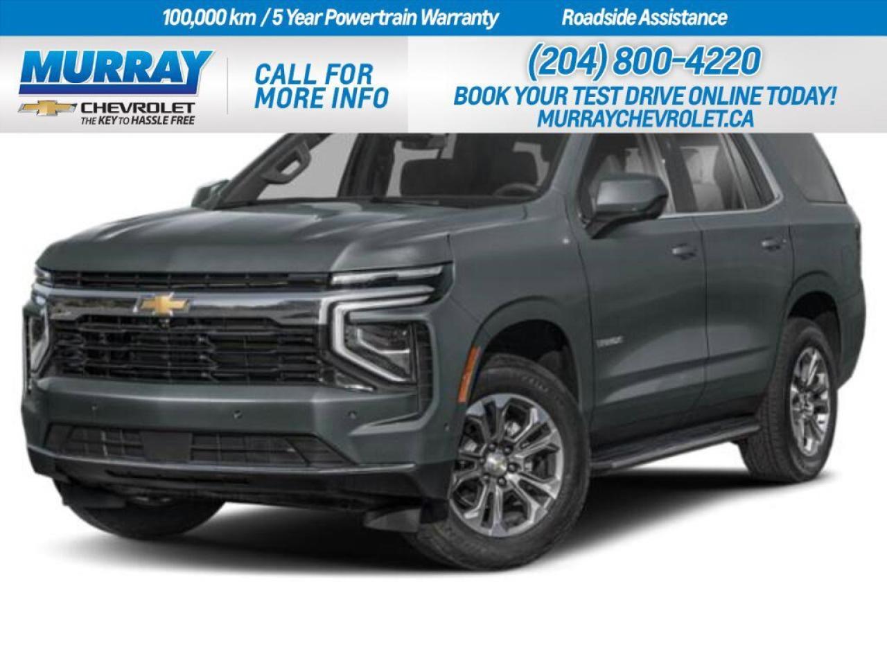 * ENGINE BLOCK HEATER * * SEATS SECOND ROW BUCKET POWER RELEASE * * CYPRESS GREY * Discover the epitome of luxury and performance with the 2026 Chevrolet Tahoe RST, available right here in Winnipeg. This sport utility vehicle boasts a powerful 5.3L ECOTEC3 V8 engine, delivering an impressive 355 horsepower and 518 Nm of torque thanks to its dynamic fuel management and variable valve timing. Paired seamlessly with the 10-speed automatic transmission, this Tahoe ensures a smooth and robust driving experience, whether youre navigating city streets or hitting the open road. The Tahoe RSTs interior is nothing short of extraordinary, featuring Jet Black/Victory Red perforated leather seating surfaces. Comfort is paramount with the comprehensive Comfort Package, which includes heated power-adjustable mirrors, a heated steering wheel, and second-row heated outboard seats. Experience the ultimate in convenience with memory settings and a Bose 10-speaker Surround system, ensuring every drive is as enjoyable as the destination. Enhancing the aesthetic appeal are LED animated headlamps and tail lamps, creating a striking presence on the road. The power panoramic sunroof with dual-pane tilt-sliding capability adds a touch of elegance, while the power liftgate and remote trunk release offer practicality for your daily adventures. With four-wheel drive and an array of advanced safety features like lane keeping assist and adaptive cruise control, the 2026 Chevrolet Tahoe RST is the perfect blend of style, comfort, and capability. Dealer Permit #1740