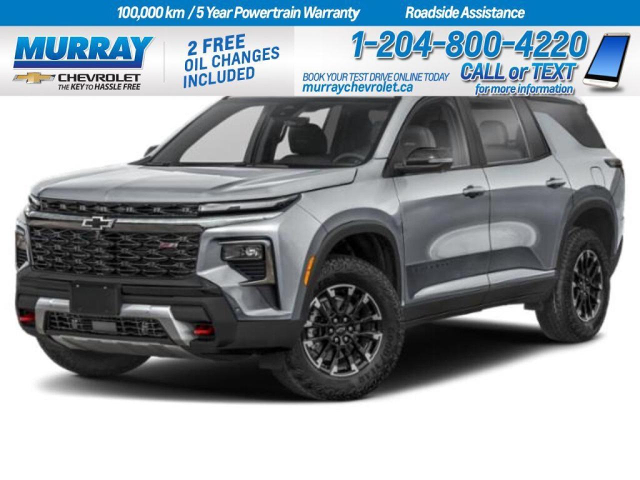 *SUNROOF POWER DUAL GLASS PANORAMIC SLIDING WITH POWER SUNSHADE* *ENGINE 2.5L TURBO DOHC SIDI WITH VARIABLE VALVE TIMING (VVT) (328 hp [244 kW] @ 5500 rpm 326 lb-ft of torque [442 N-m] @ 3500 rpm) (STD)* *Z71 JET BLACK WITH TORCH RED STITCHING EVOTEX SEAT TRIM* Unleash the potential of the 2026 Chevrolet Traverse Z71, a sport utility marvel in Sterling Grey Metallic thats ready for the roads of Winnipeg. This new Traverse embodies both style and strength, equipped with a robust 2.5L turbocharged engine that delivers an impressive 328 hp. Combined with an 8-speed automatic transmission, this powerhouse ensures a smooth and responsive driving experience, perfect for any adventure. Inside, the Z71 Jet Black interior with Torch Red stitching envelops you in comfort and distinction. The cabin features a dual glass panoramic sunroof with a power sunshade, allowing natural light to flood the interior, enhancing every journey you take. The advanced heated steering wheel and heated front seats promise comfort even on the chilliest of days, making this the perfect companion for Winnipegs diverse weather. Safety and convenience are at the forefront with features like adaptive cruise control, an aerial view display system, and lane departure warning, all designed to provide peace of mind. The Traverse is also equipped with a power liftgate for effortless access to ample cargo space, making it ideal for both urban commutes and weekend getaways. Discover the perfect blend of luxury, performance, and utility with the 2026 Chevrolet Traverse Z71. Dealer Permit #1740