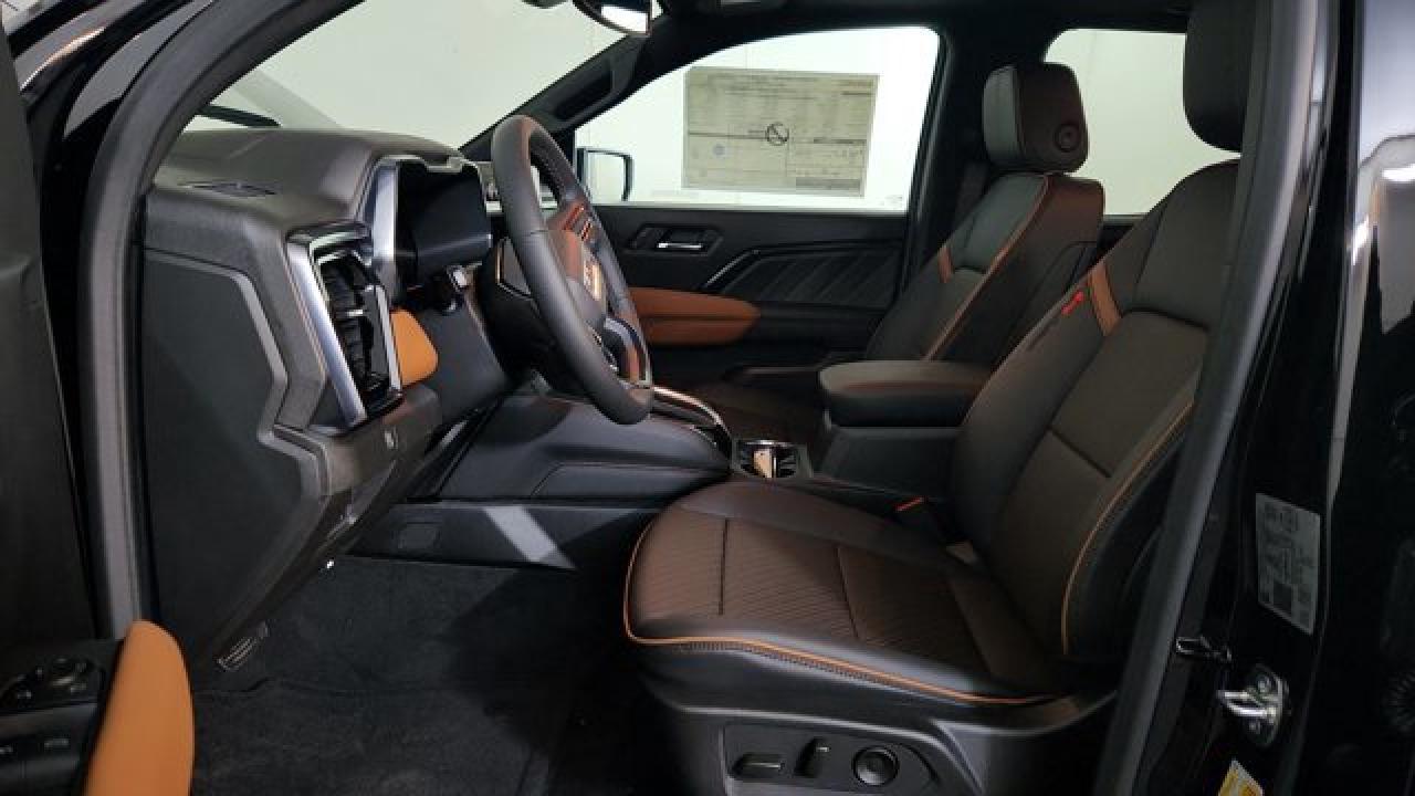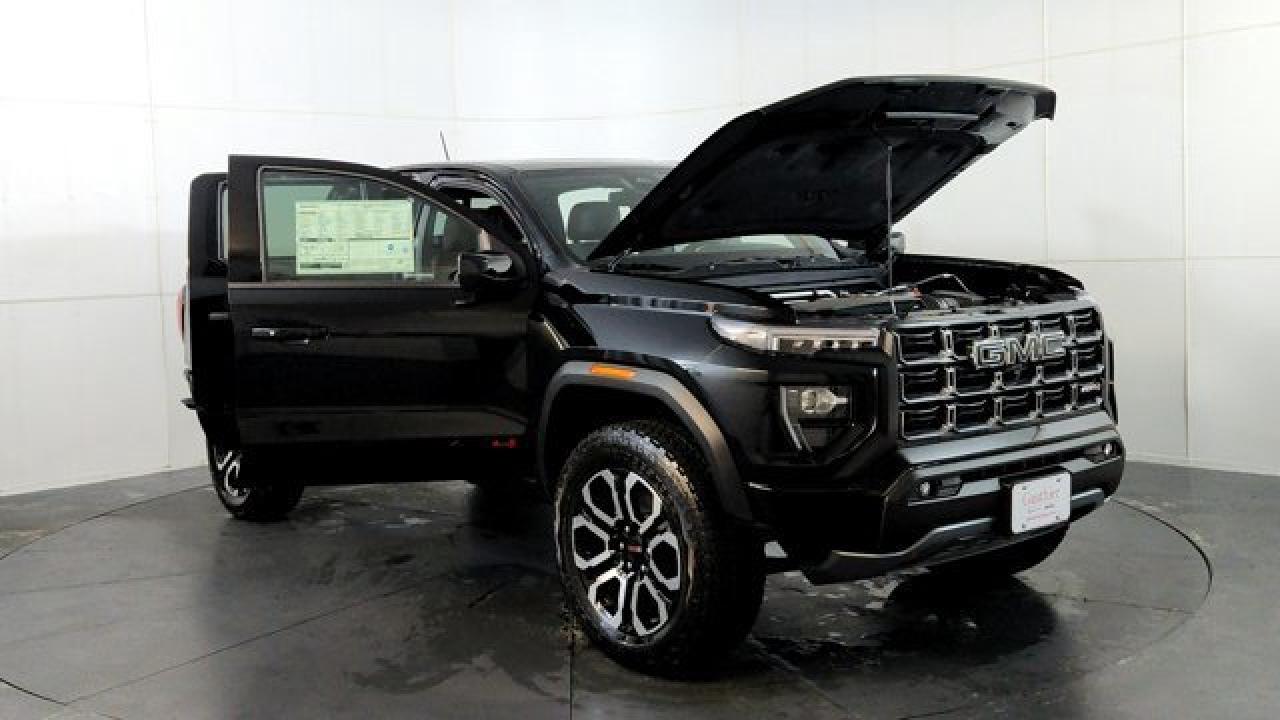 The 2026 GMC Canyon AT4 is a rugged yet upscale midsize pickup that blends capability, comfort, and style. With the AT4 Premium Package, it adds leather-appointed Jet Black/Timber perforated seats, a heated steering wheel, ventilated front seats, power lumbar for the passenger, driver memory settings, wireless charging and a rear seat centre armrest. The Nightfall Essentials Package gives it bold blacked-out styling touchpoints like black badges, black GMC emblems, 20-inch machine-faced aluminum wheels with dark pockets and all-terrain tires. The Technology Plus Package loads in driver aids and conveniences such as Adaptive Cruise Control, HD Surround Vision, Rear Pedestrian Alert, a Bose premium audio system, a sunroof, laminated acoustic windshield glass and a multicolour 6.3-inch head-up display.