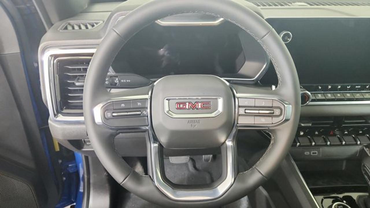 The 2026 GMC Canyon Elevation delivers a strong balance of comfort, tech, and utility in the midsize truck segment. The Convenience Package brings features such as dual-zone automatic climate control, remote start, LED fog lamps, a MultiStow tailgate, 120-volt outlets both bed-mounted and in the rear of the console, auto-dimming rearview mirror, keyed tailgate lock, and sliding visors with illuminated vanity mirrors. Meanwhile, the Technology Package adds advanced driver aids like Adaptive Cruise Control, HD Surround Vision, and Rear Pedestrian Alert. The sunroof enhances cabin ambiance with express-open/close functionality and adds natural light.