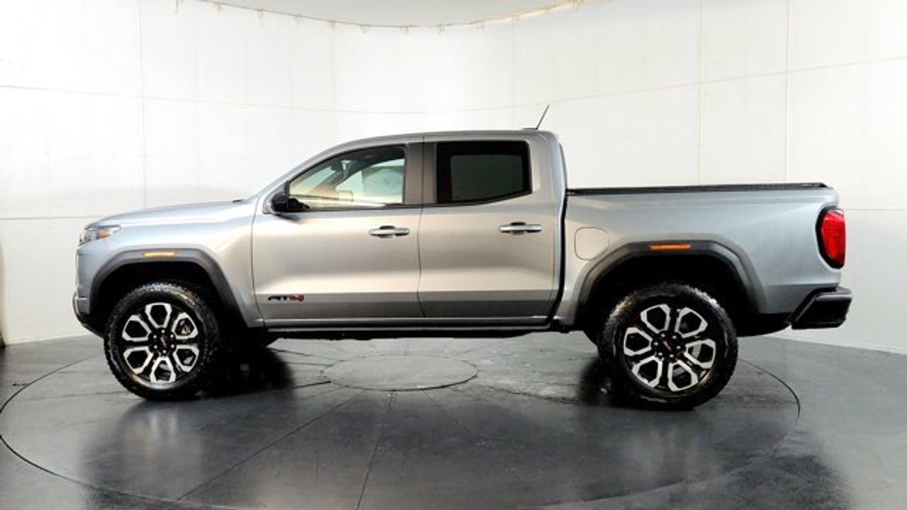 The 2026 GMC Canyon AT4 is an off-road-focused midsize pickup that comes standard with a 2-inch factory lift, an ultra-wide track, and 4WD equipped with a two-speed AutoTrac transfer case, automatic locking rear differential, and advanced Hill Descent Control. Under the hood, it's powered by the potent TurboMax 2.7 L turbocharged inline-4 engine delivering 310 hp and 430 lb-ft of torque, with a max towing capacity of up to 7,700 lbs. Inside, the AT4 features a modern 11.3-inch center infotainment touchscreen, an 11-inch digital driver information display, leather heated and ventilated front seats and 20-inch wheels.