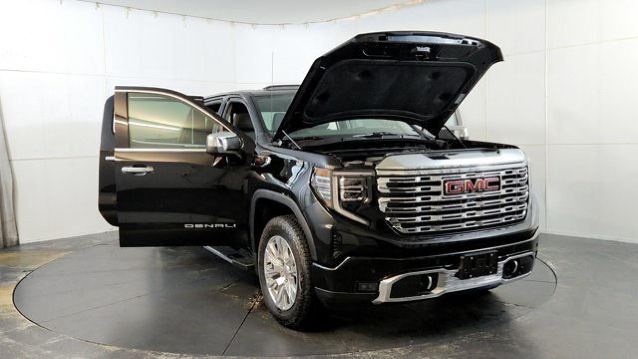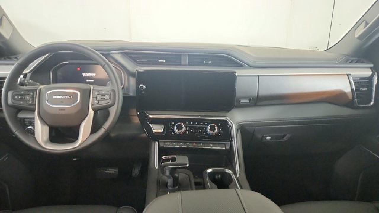 The 2026 GMC Sierra 1500 Denali blends upscale luxury with truck-capable performance, offering a 6.2 L V8 paired to a 10-speed automatic transmission and a bold Denali signature grille. Inside the cabin has wood and patterned aluminum trim elements, Forge-perforated leather seating surfaces, and a dual-digital display system featuring a 12.3-inch driver cluster and 13.4-inch center touchscreen with Google Built-In and wireless smartphone integration. Additionally, the Sierra Denali supports advanced driver-assist tech including standard features like automatic emergency braking and blind-spot monitoring.
