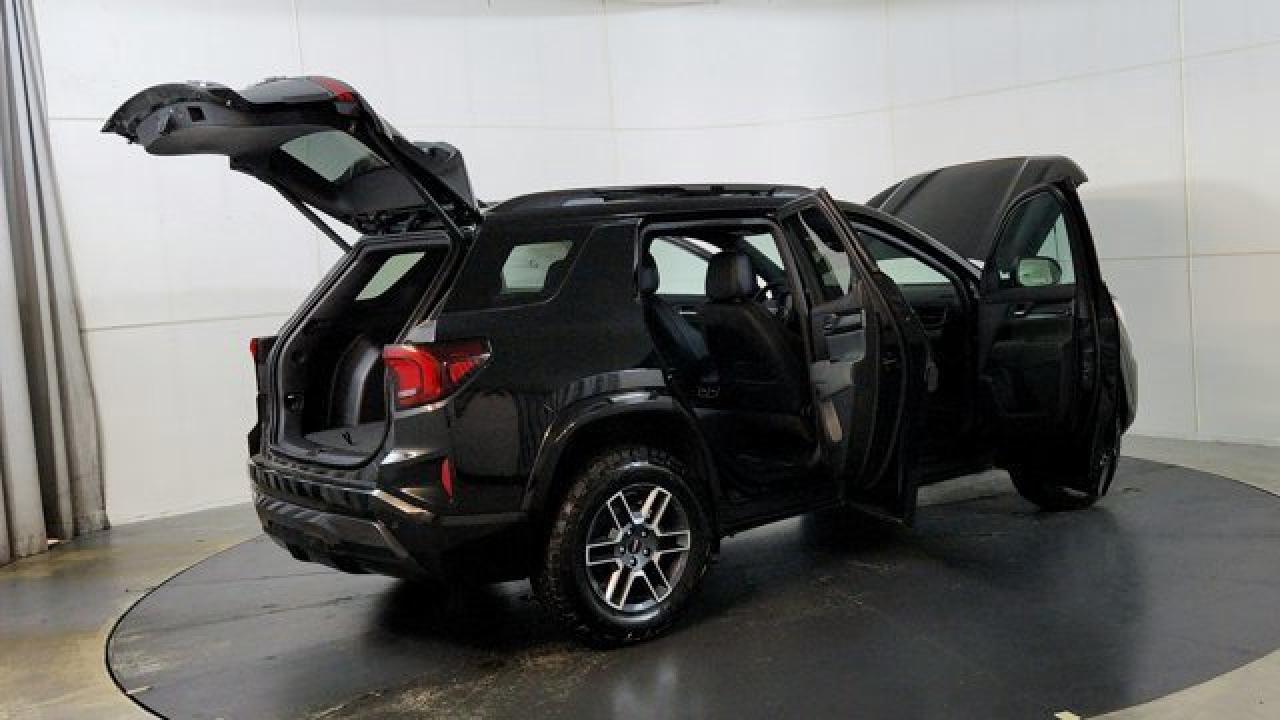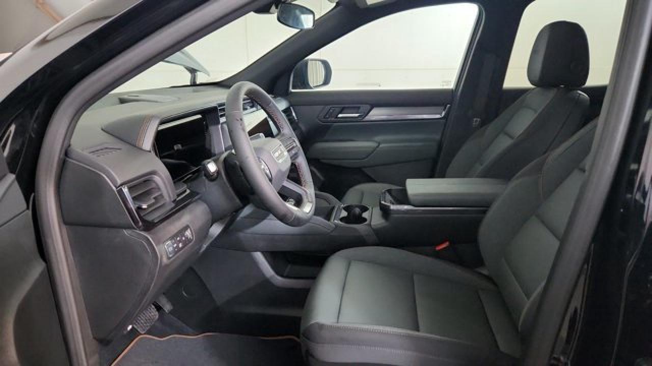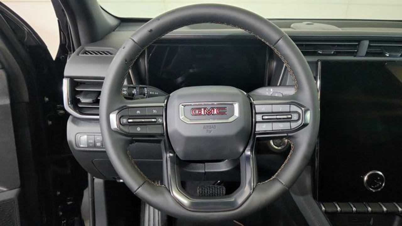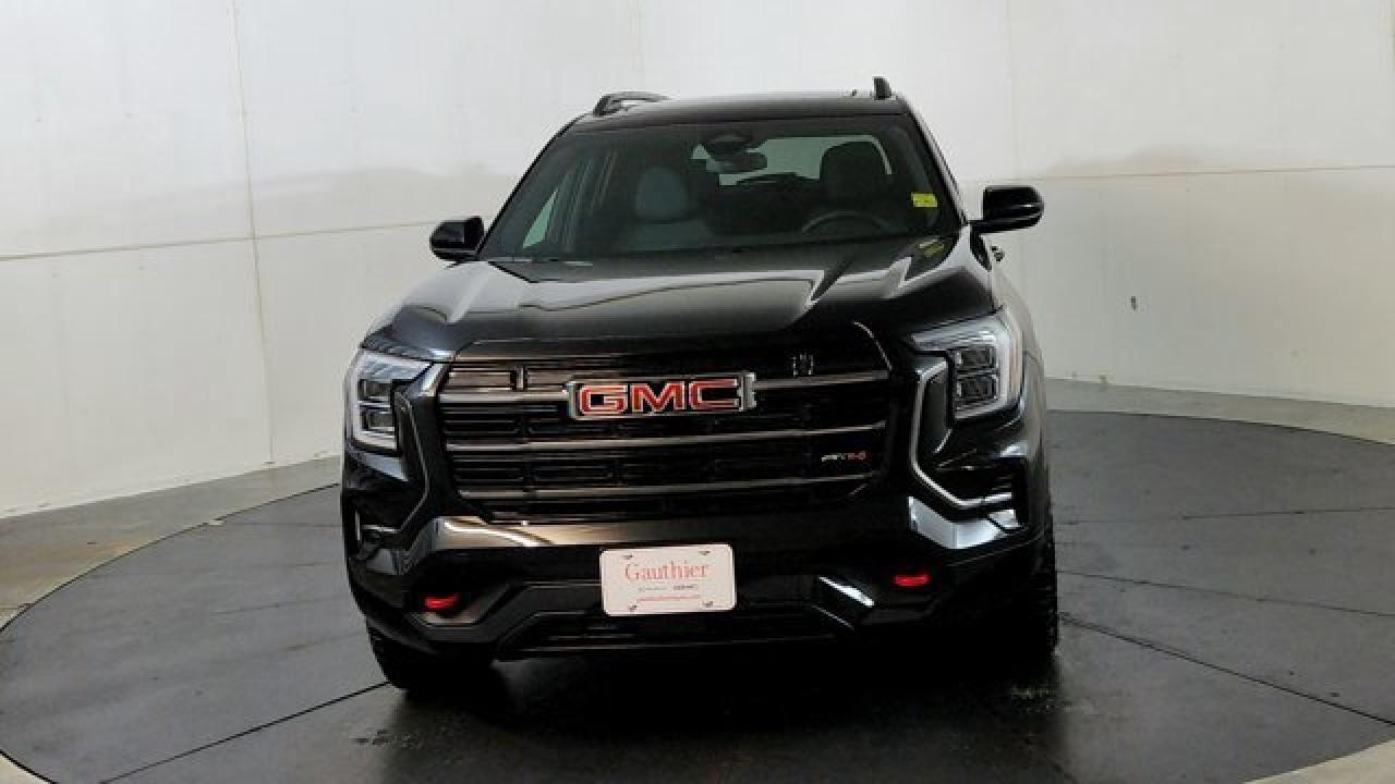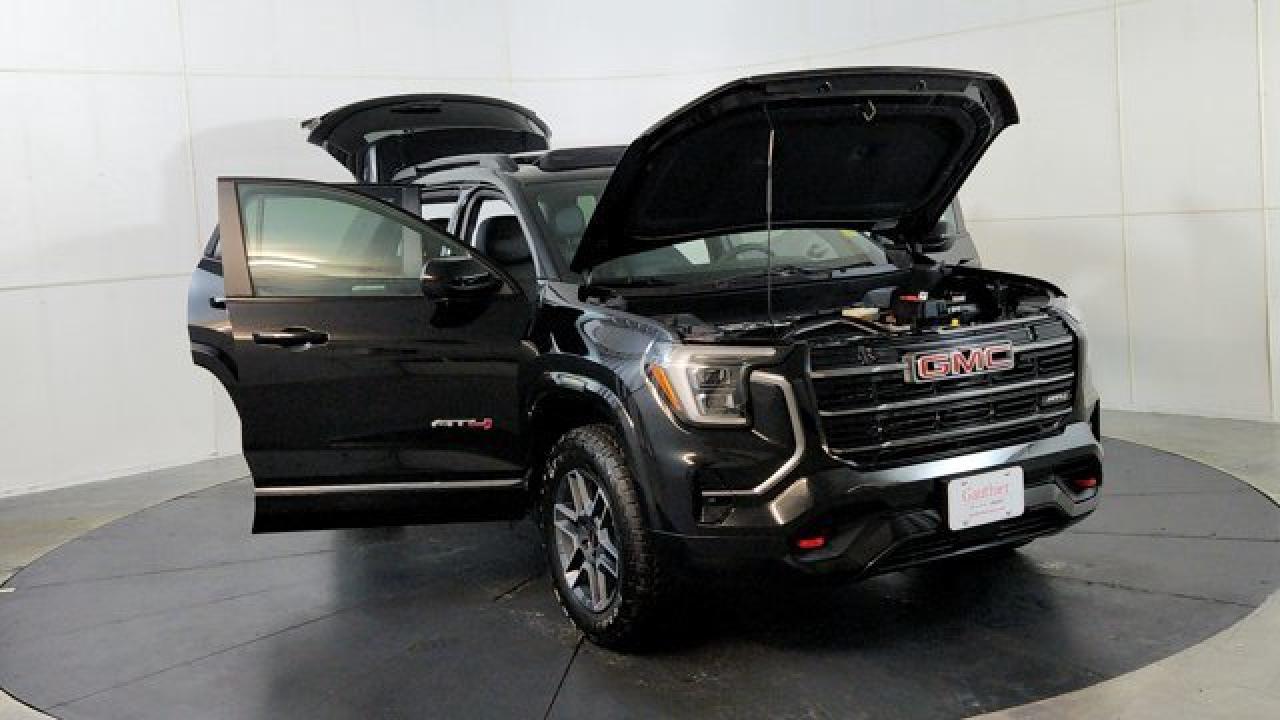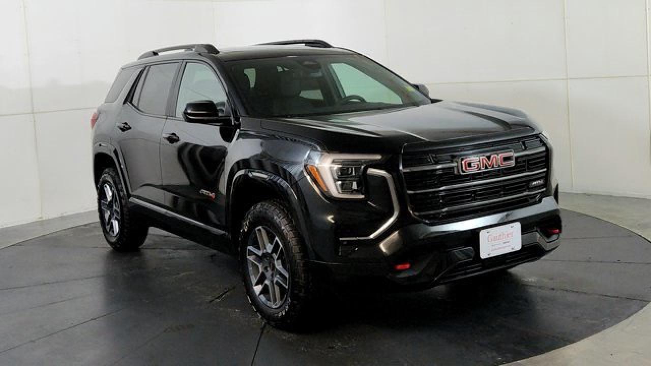 The 2026 GMC Terrain AT4 takes the compact SUV to adventurous new heights with a lifted ride height, a front skid plate with steel underbody shielding, and red recovery hooks paired with 17-inch dark-machined aluminum wheels wrapped in all-terrain tires for credible off-road chops. It also brings AT4-exclusive features like a selectable Terrain drive mode, all-wheel drive, hill descent control, and animated exterior lighting---while delivering everyday usability thanks to a 1.5 L turbocharged four-cylinder engine and an 8-speed automatic transmission. Inside there's a sunroof, a full suite of safety and infotainment tech including a 15-inch touchscreen and Google-integrated connectivity. With a dual-zone climate control, heated front seats and steering wheel, and standard driver-assist systems, it balances rugged capability with modern comfort and convenience.