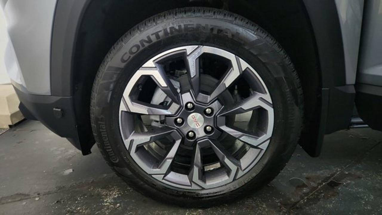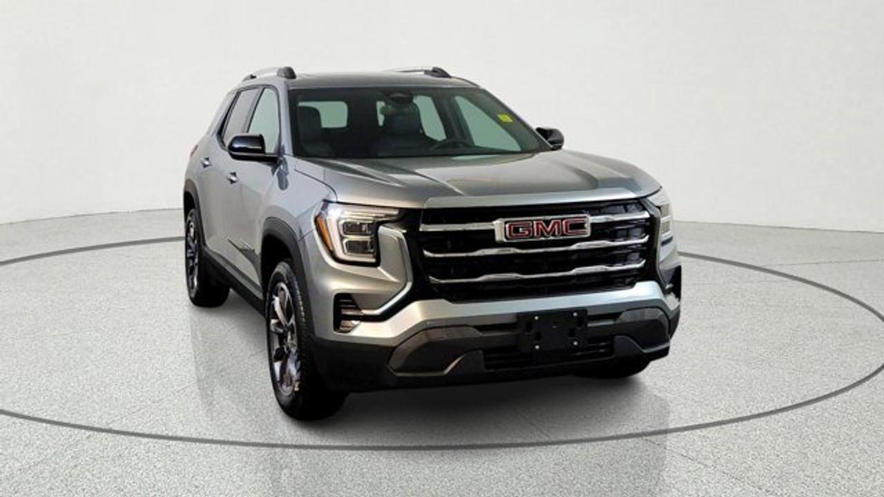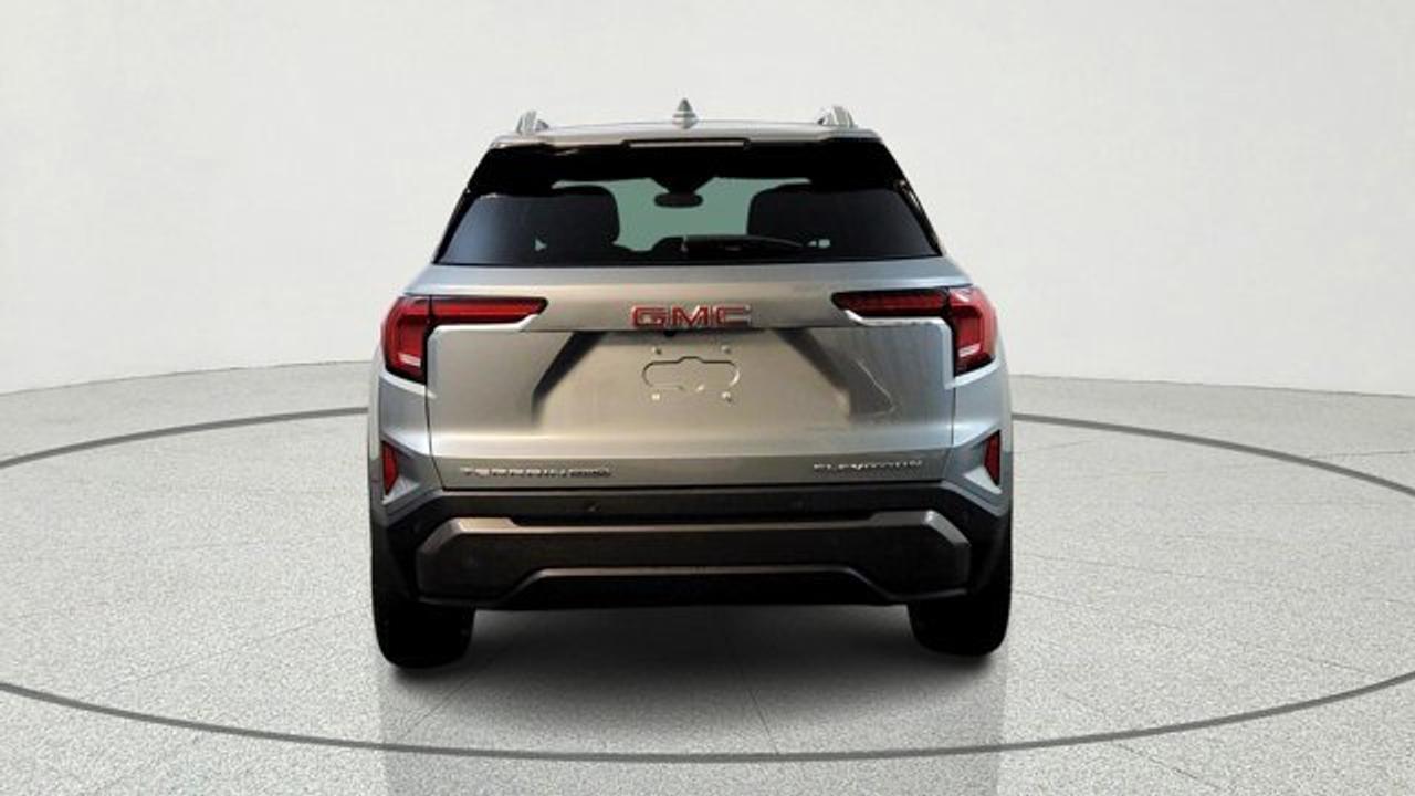 The 2026 GMC Terrain Elevation is a compact SUV that blends modern tech, comfort, and safety with bold styling, featuring a standard 15-inch premium GMC infotainment touchscreen with Google built-in, an 11-inch digital driver display, and over 15 advanced safety and driver-assistance systems. Its comfortable interior includes heated front seats, a heated steering wheel, power liftgate, wireless charging and a panoramic sunroof. Powered by a turbocharged 1.5L engine with all-wheel drive and multiple drive modes. The exterior is decked out with a black trim package.