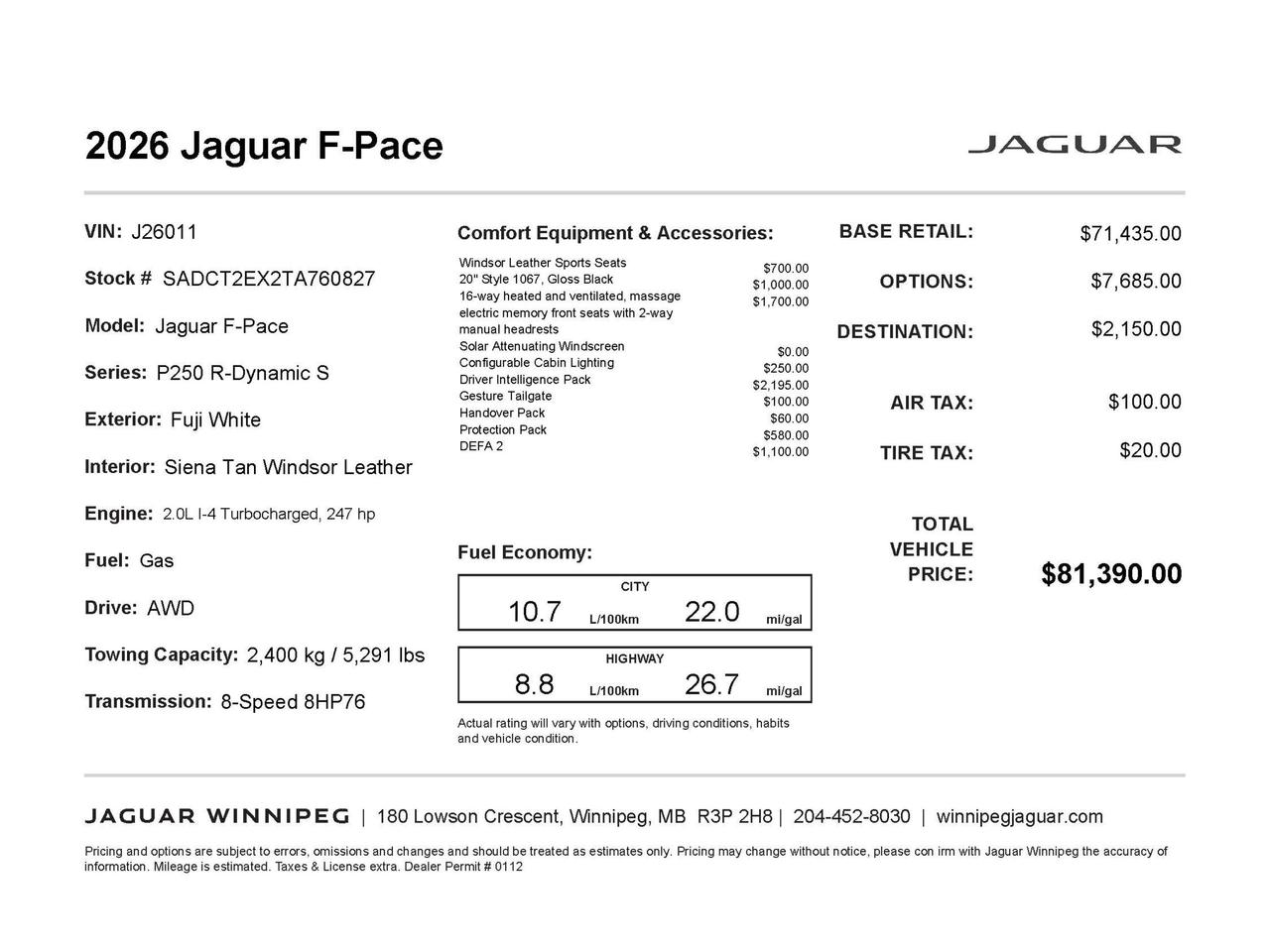 Discover the epitome of automotive innovation at Jaguar Winnipeg. Reserve your test drive today and experience the F-PACE's blend of luxury and performance firsthand. Our expert team is ready to answer any questions and guide you through the seamless purchase process. Visit www.winnipegjaguar.com to start your journey with this exceptional SUV.