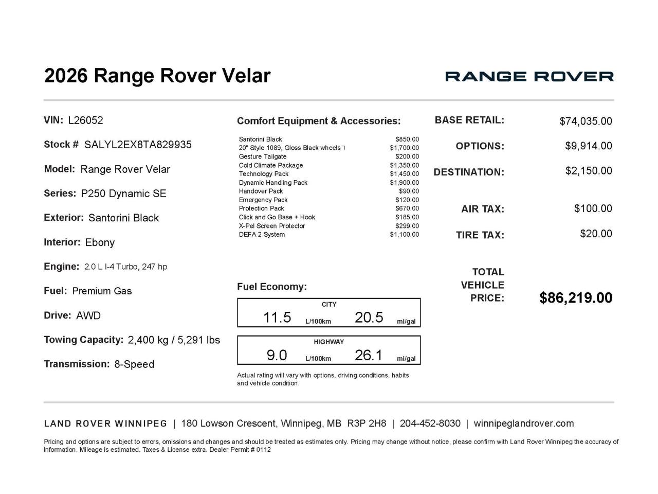 Don't miss this opportunity to own the future of automotive excellence. Reserve your 2026 Range Rover Velar today or contact Land Rover Winnipeg to schedule a personalized test drive. Our team is ready to answer any questions and guide you through our seamless purchasing process.