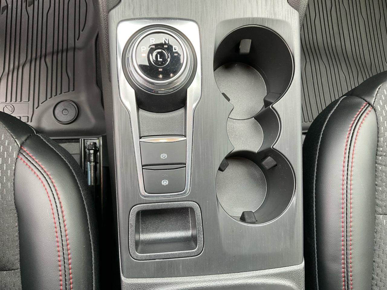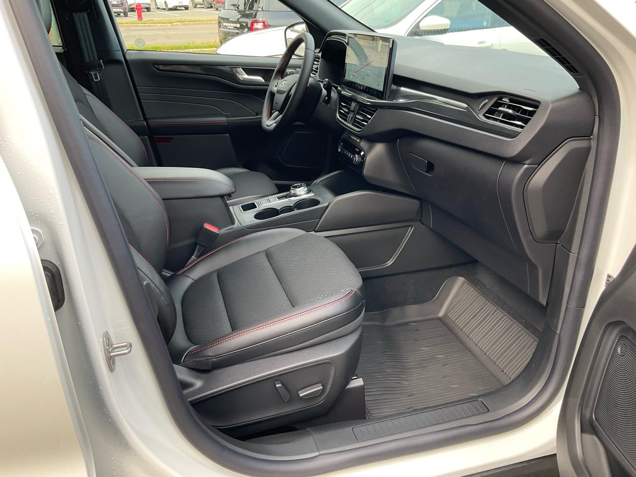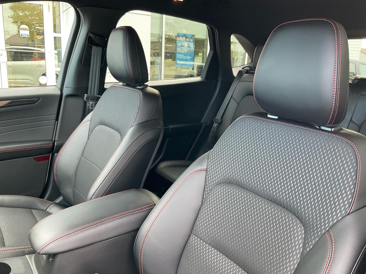 Partial Vinyl and Cloth Seats with Red Stitching