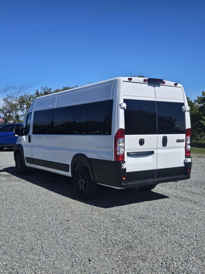 Acessorize it your way! This 3500 Promaster Window Van Ext, has a High Roof, with no cargo partitioning, no rear seating, two front swivel leather seats, rear heater a/c prep package, heavy duty suspension, 12 volt rear auxillary power outlet, upfit interface connector, 10 " screen with Navigation, suround view camera, P P park unpark assist system, adaptive cryuise control, wireless charging pad, blilnd spot cross path detection plus more...