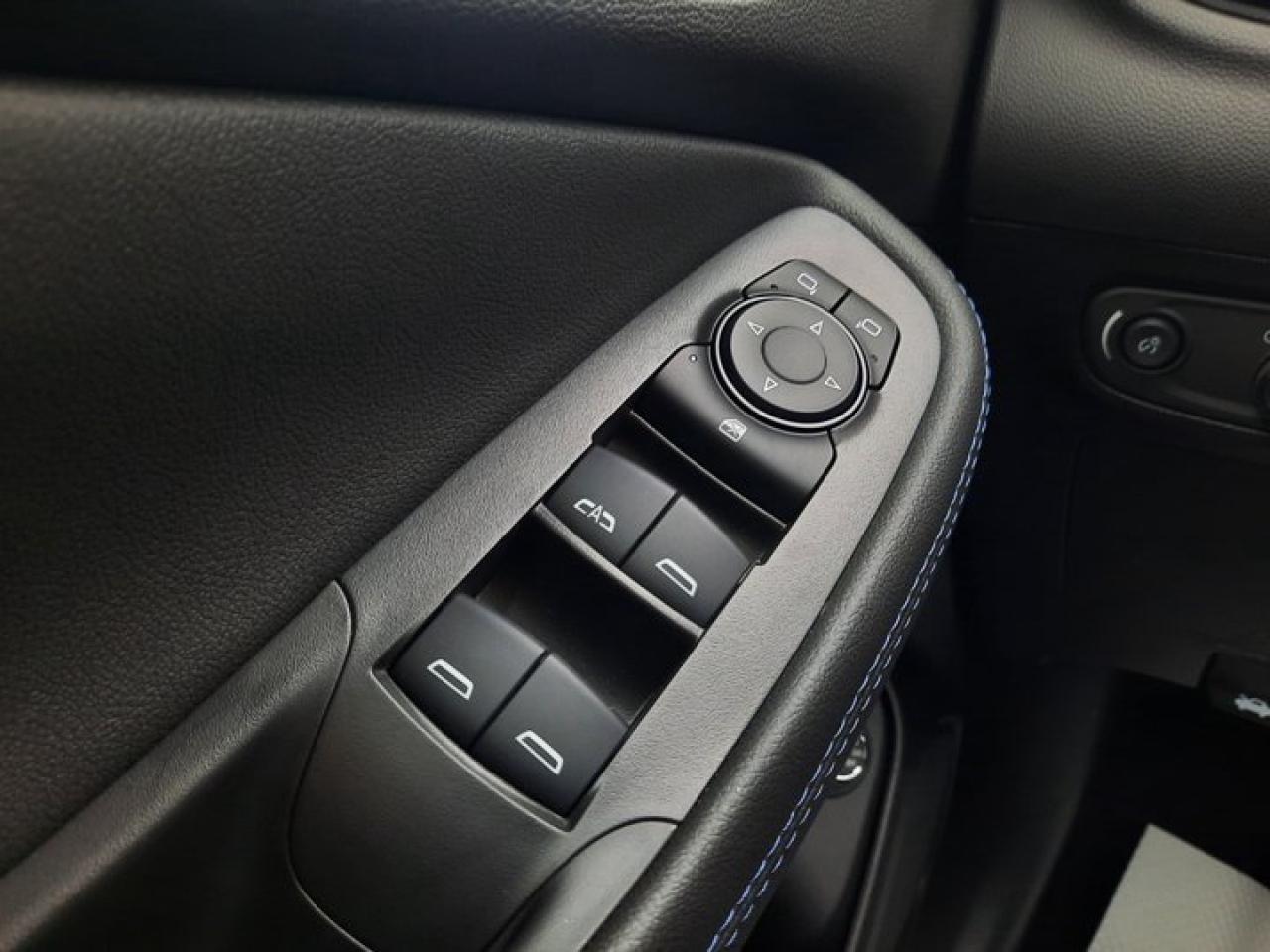 EBONY SEATS AND INTERIOR WITH SANTORINI BLUE STITCHING LEATHERETTE SEAT TRIM