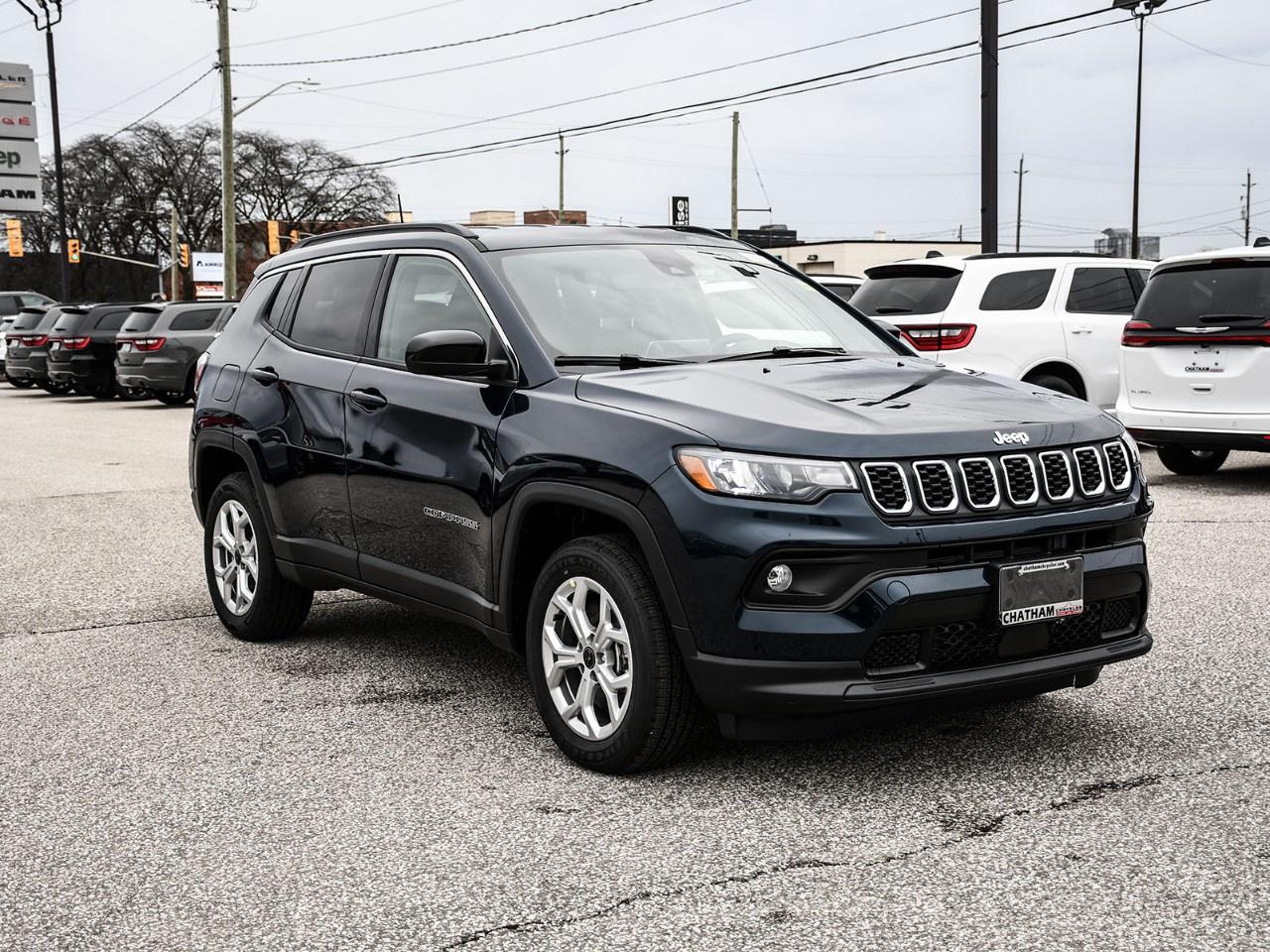The striking 2026 Jeep Compass North 4x4 in a sophisticated Blue finish with its robust 4x4 drivetrain is ready to take on every adventure. This SUV's commanding presence is complemented by its seamless handling, ensuring you navigate both city streets and rugged terrains with ease.