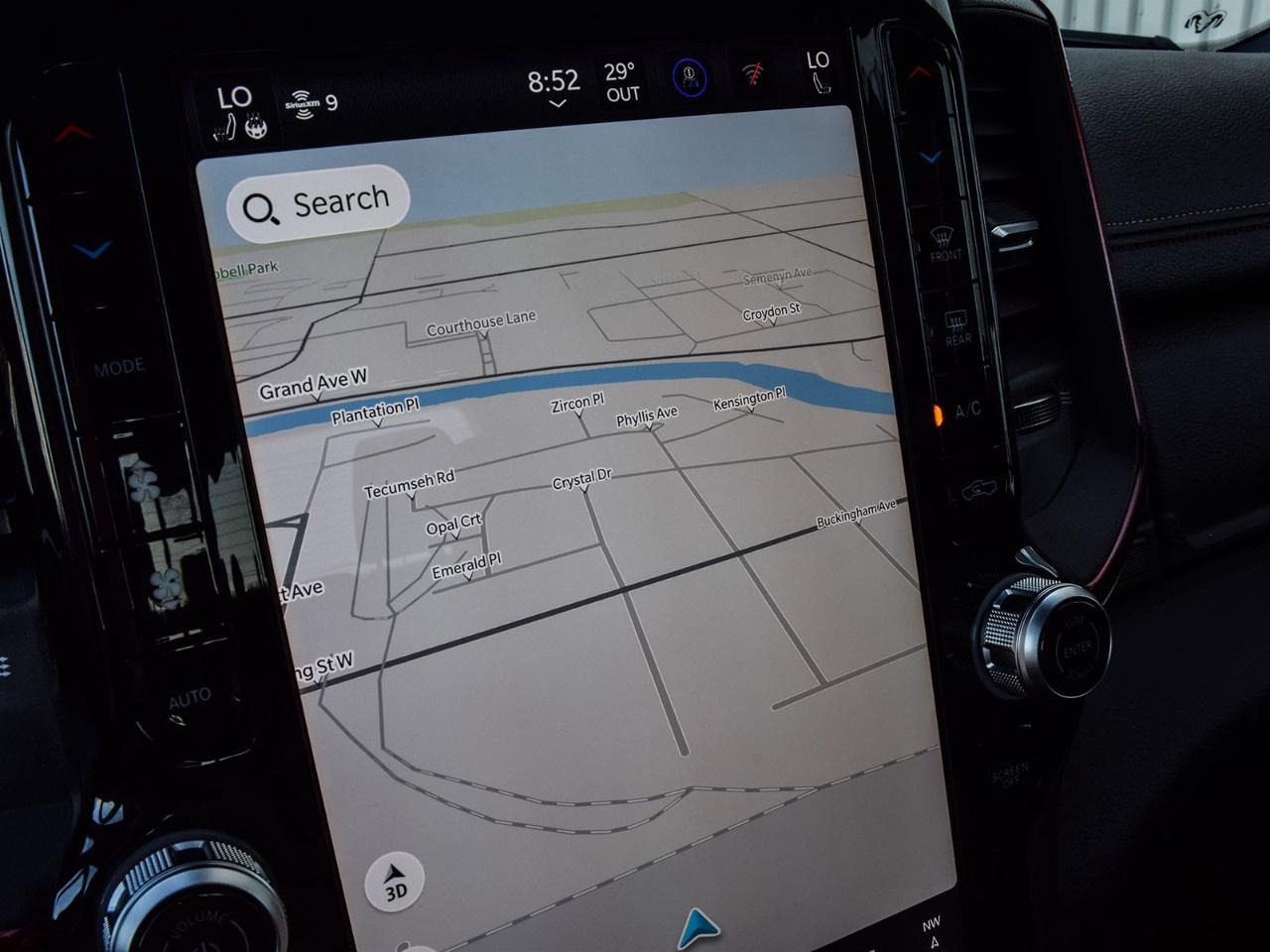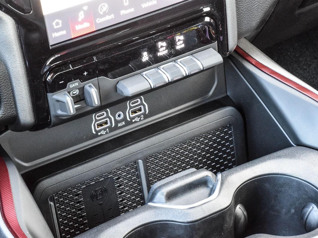 The exterior of the Ram 1500 Rebel exudes a bold presence, complemented by stylish alloy wheels that highlight its athletic stance. The crew cab configuration provides ample space for both passengers and cargo, while the black interior offers a refined and comfortable environment. With power seats, a leather steering wheel, and an array of technological features, this truck ensures every journey is as comfortable as it is exhilarating.