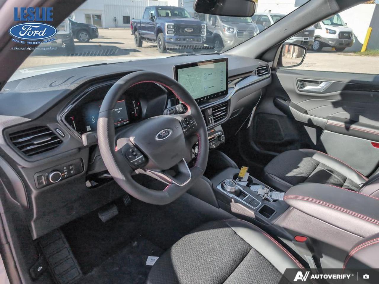 Partial Vinyl and Cloth Seats with Red Stitching