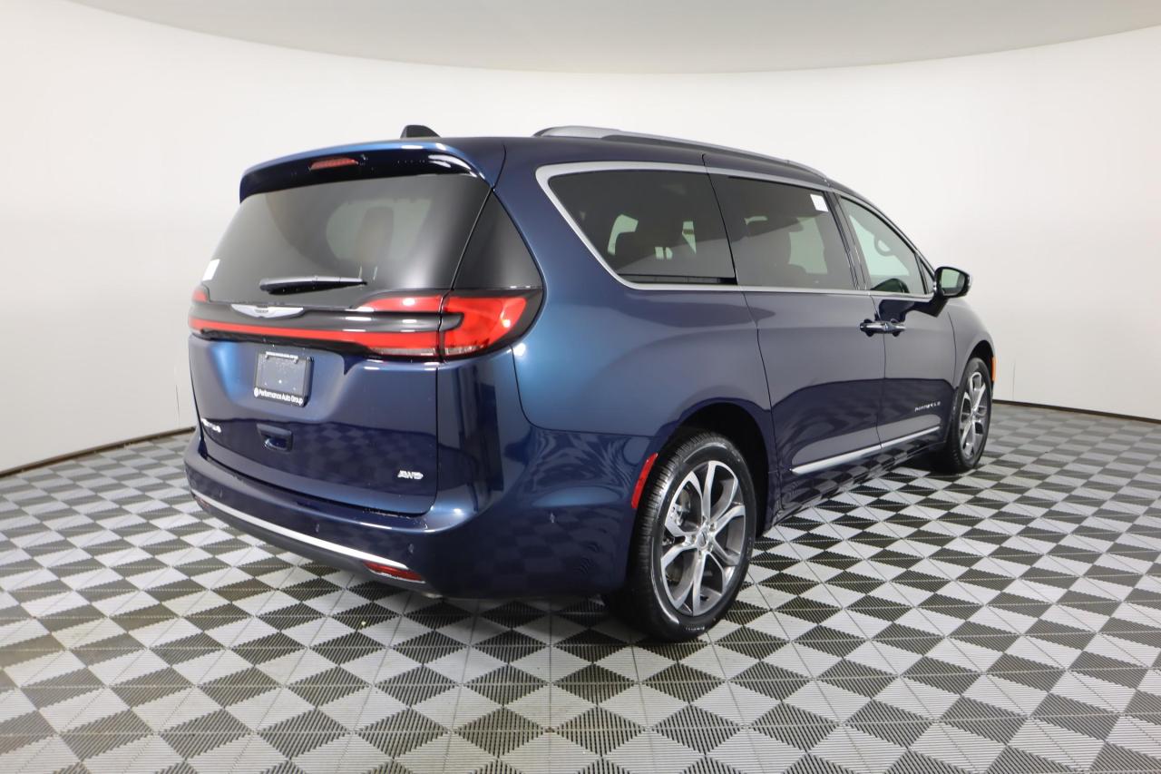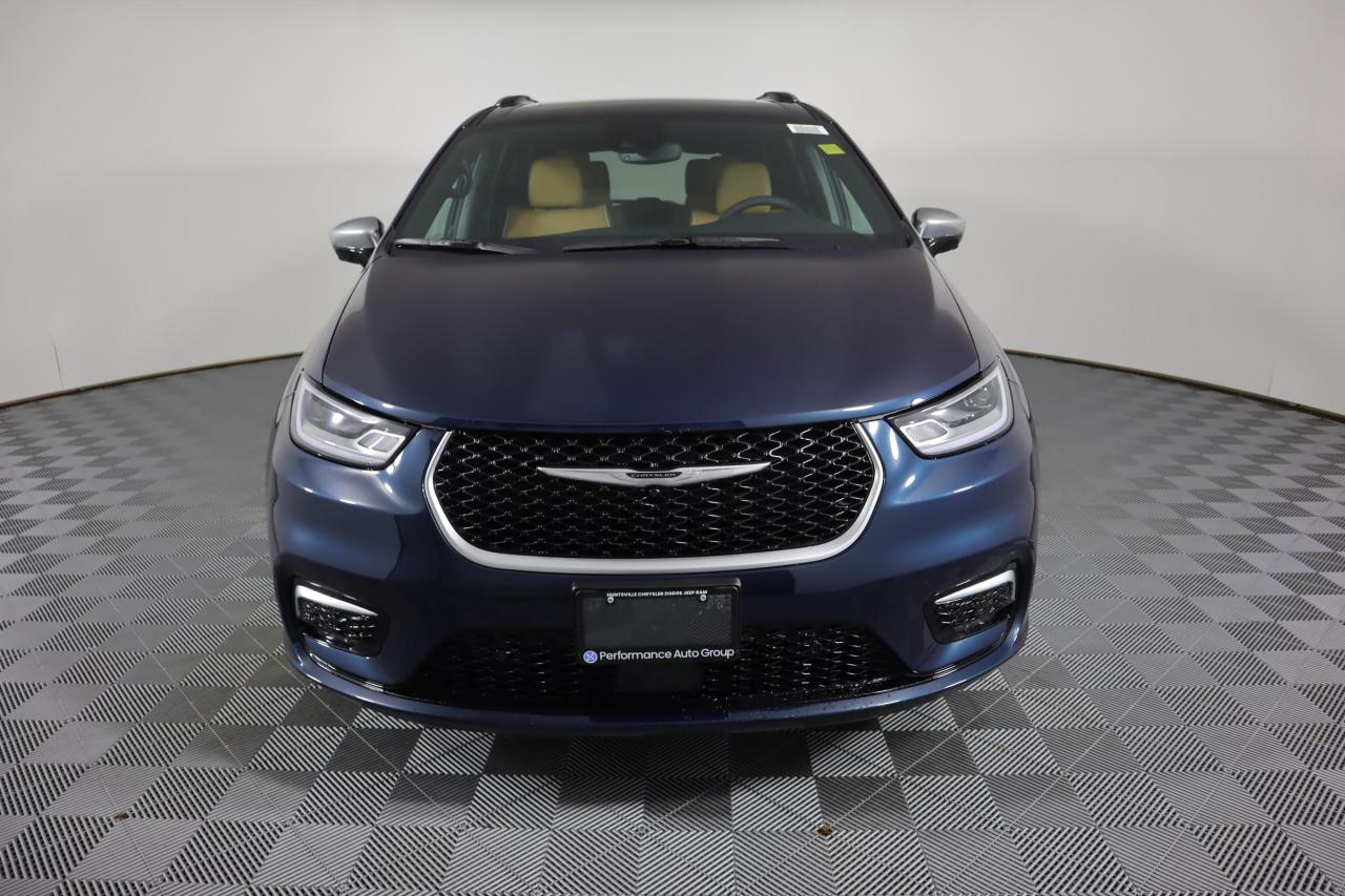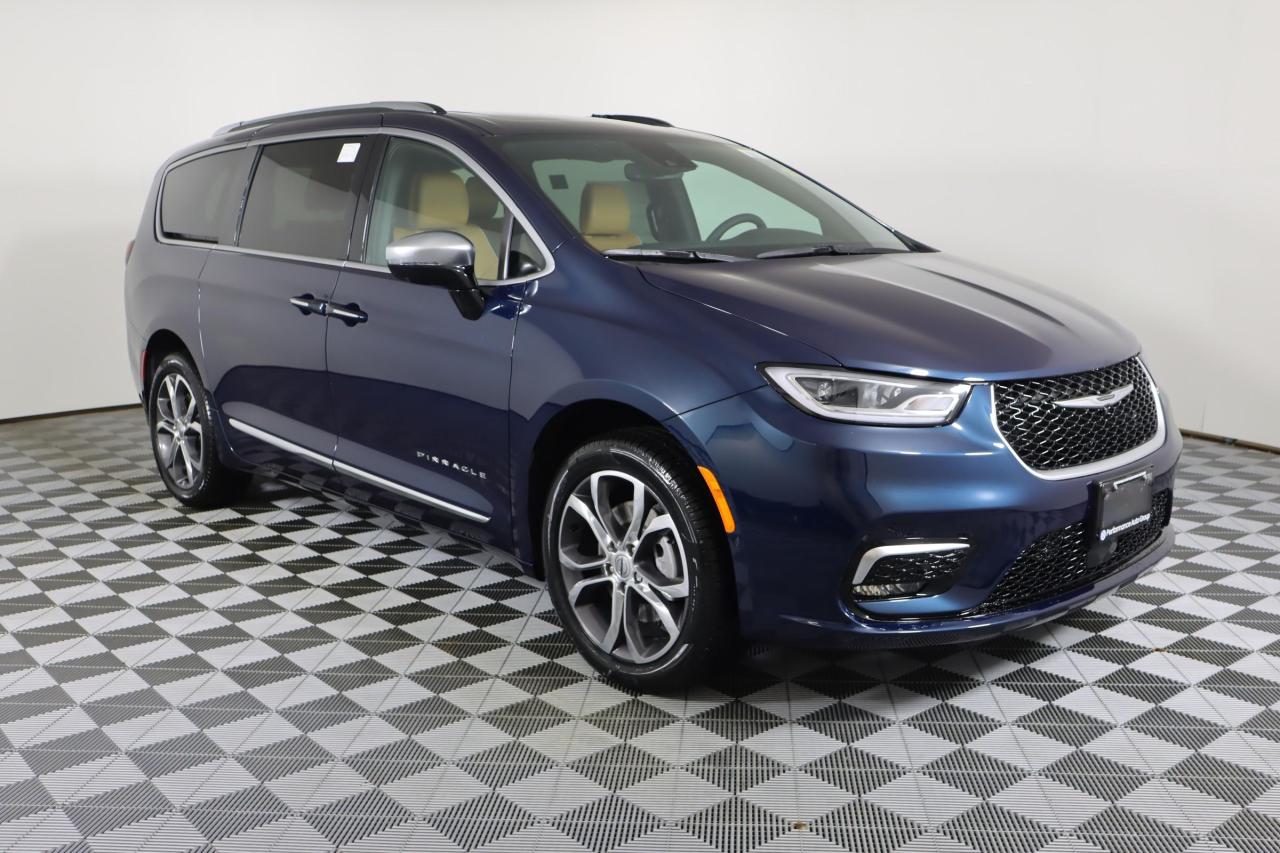 Our remarkable 2023 Chrysler Pacifica Pinnacle AWD Minivan is made to move people with peak luxury in Fathom Blue Pearl! Motivated by a 3.6 Litre Pentastar V6 generating 287hp matched to a 9 Speed Automatic transmission. This All Wheel Drive minivan enhances its ride with responsive handling, and it also returns approximately 9.4L/100km on the highway. Boldly sophisticated, our Pacifica presents a stylish design with details like LED lighting, fog lamps, a dual-pane panoramic sunroof, alloy wheels, heated power-folding mirrors, and hands-free access for the side doors/liftgate.