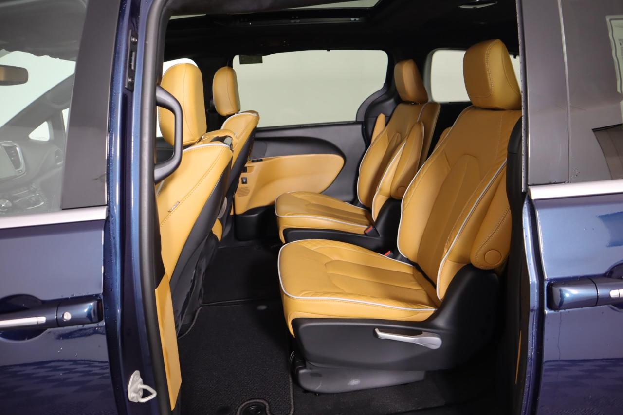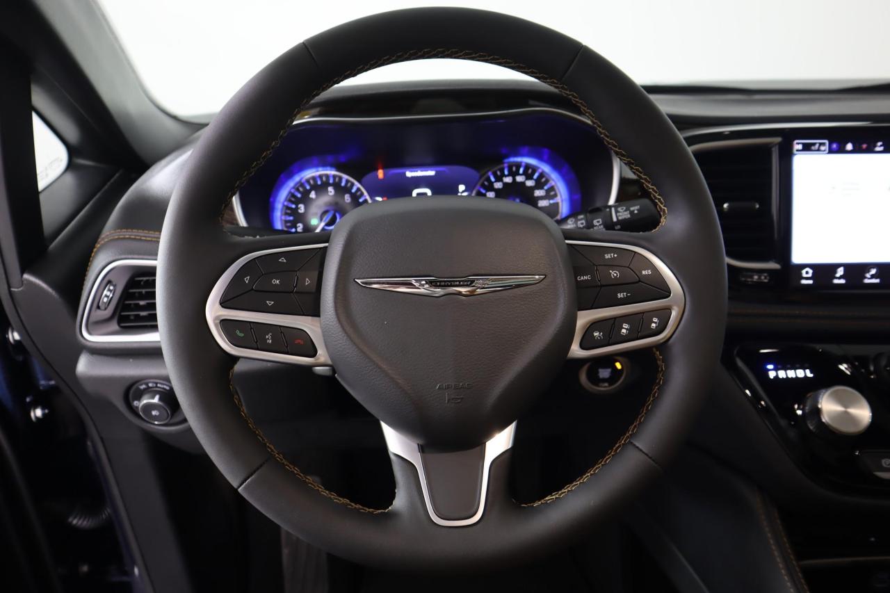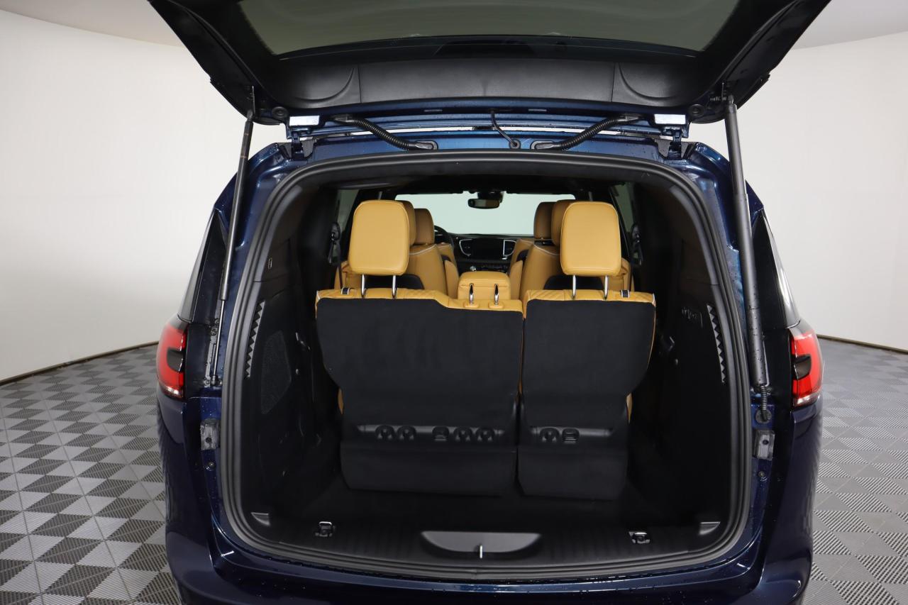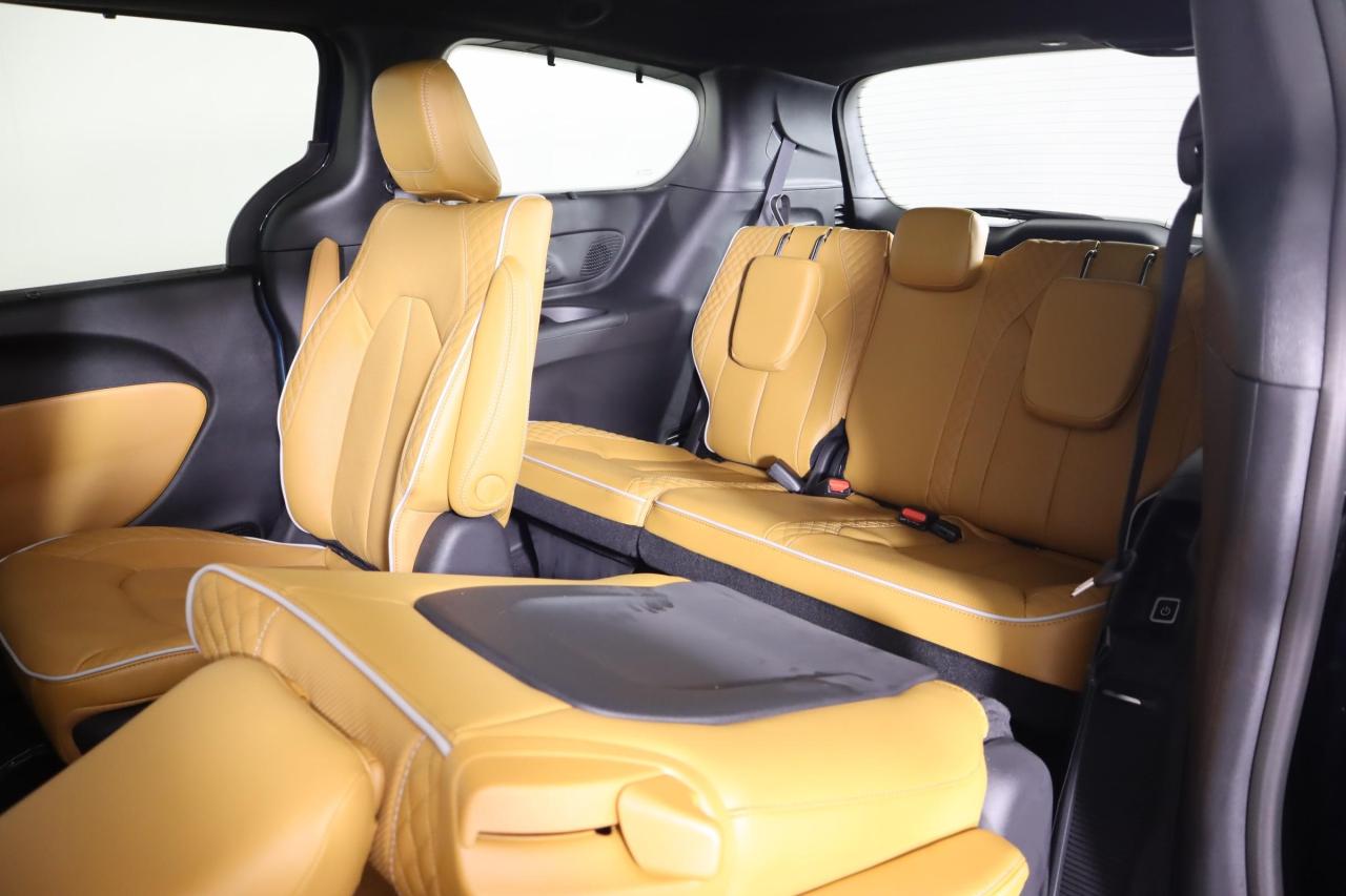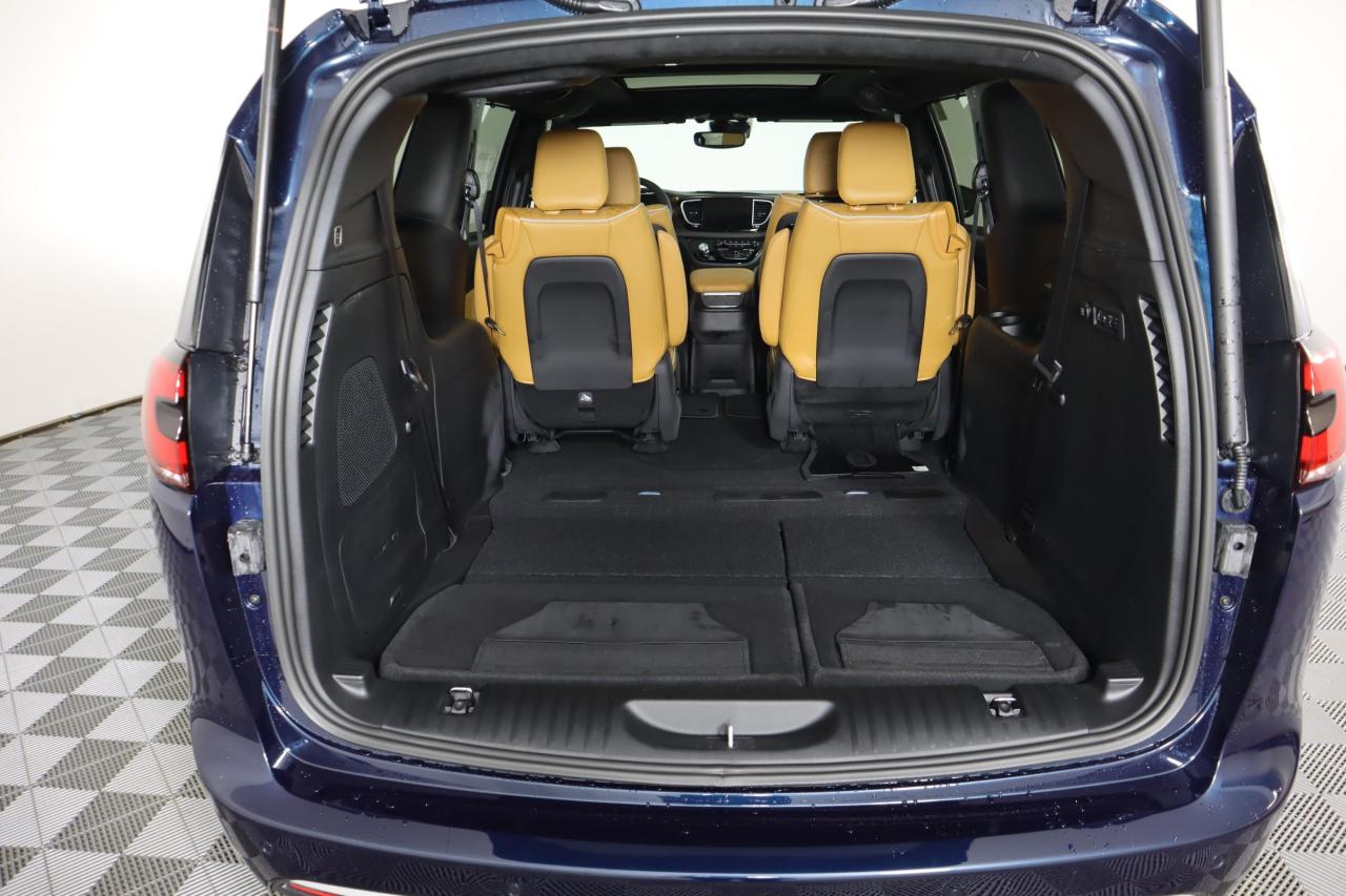 The luxurious layout in our Pinnacle cabin includes quilted Nappa leather heated/ventilated power front and heated second-row seats, a power-folding third-row, a heated Luxury steering wheel, tri-zone automatic climate control, and a built-in vacuum system. Our Pacifica provides a premium array of technology, too, highlighted by a FamCam interior camera, a 10.1-inch touchscreen, navigation, WiFi compatibility, wireless charging, Android Auto/Apple CarPlay, Bluetooth, and a Harman Kardon sound system.