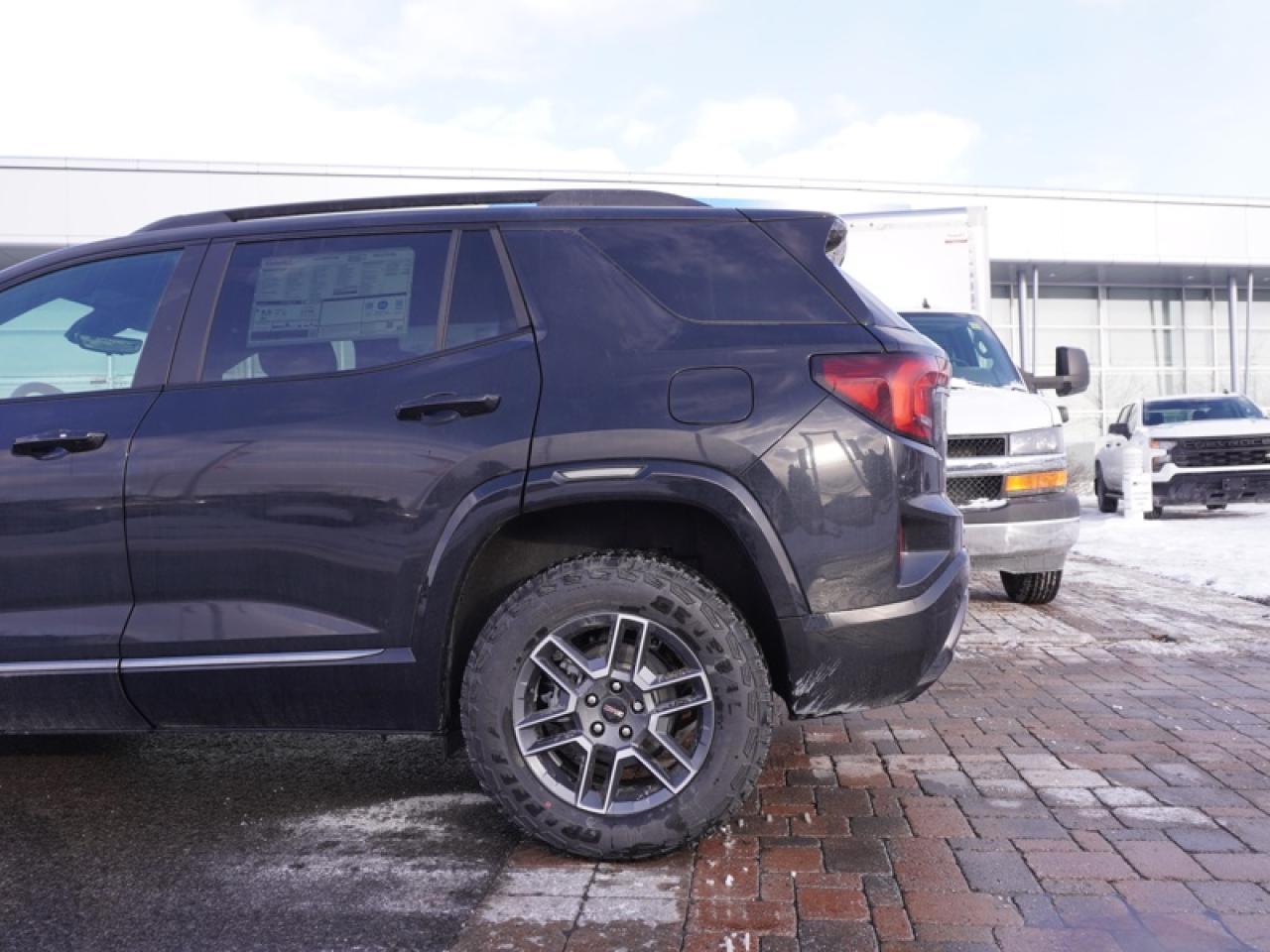 Our Terrain's trim level is AT4. Convenience Package II adds an 8-way power driver seat with lumbar support, dual-zone automatic climate control with humidity and windshield temperature sensors, AutoSense hands-free liftgate, RainSense wipers with heated park, a universal home remote, wireless phone charging, brushed aluminum roof rails, and overhead sunglass storage. Driver Convenience Package brings remote start, heated front seats, a heated steering wheel, illuminated vanity mirrors, and express windows for all passengers, while a 15 Premium Infotainment System with Google Built-In, SiriusXM with 360L, wireless Apple CarPlay/Android Auto, Wi-Fi hotspot, and 5G connectivity elevate entertainment and connectivity. Interior amenities include premium cloth/CoreTec seats, adaptive cruise control, multiple USB ports, dual-zone automatic climate control, rear air vents, and active noise cancellation. Safety features include Enhanced Automatic Emergency Braking, Rear Cross Traffic Braking, Reverse Automatic Braking, Blind Zone Steering Assist, Lane Keep Assist with Lane Departure Warning, HD Rear Vision Camera, Teen Driver mode, and OnStar services for comprehensive driver confidence. This vehicle has been upgraded with the following features: Sunroof, Technology Package II, Convenience Group.