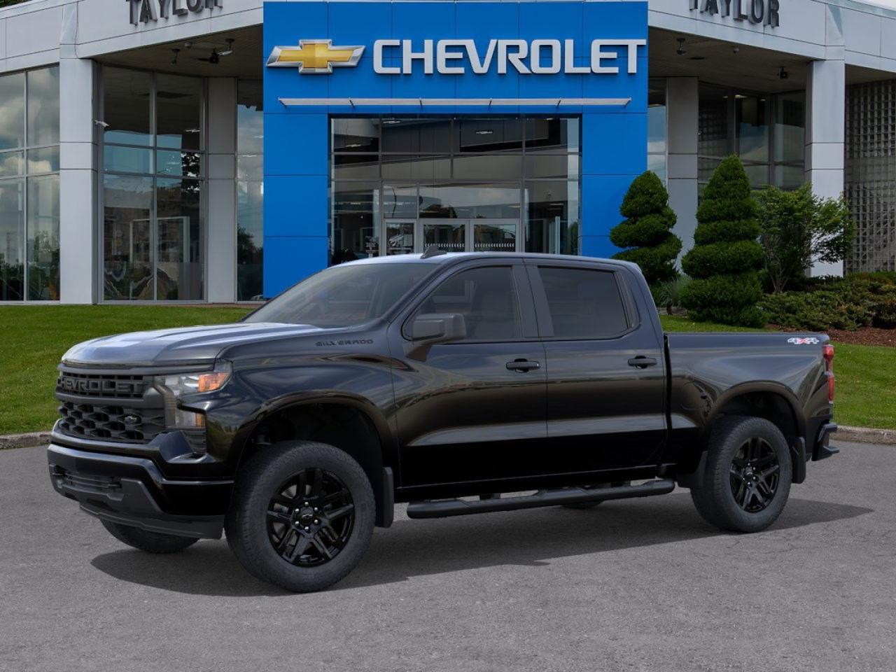 Trailering Package, Aluminum Wheels, Remote Start, Automatic Emergency Braking, Lane Keep Assist! Thanks for looking. This black Crew Cab 4X4 pickup has an automatic transmission and is powered by a 310HP 2.7L 4 Cylinder Engine. Our Silverado 1500's trim level is Custom. Standard features include a trailering package, remote start, aluminum wheels, hitch guidance, a power locking EZ lift tailgate, and a 7-inch infotainment display with Apple CarPlay and Android Auto. Safety features also include lane keep assist with lane departure warning, following distance indication, forward collision alert, and automatic emergency braking with front pedestrian braking. This vehicle has been upgraded with the following features: Trailering Package, Aluminum Wheels, Remote Start, Automatic Emergency Braking, Lane Keep Assist, Lane Departure Warning, Forward Collision Alert. To apply right now for financing use this link : https://www.taylorautomall.com/finance/apply-for-financing/ See dealer for details. HST, licensing, and Federal luxury tax (if applicable) are extra. Come by and check out our fleet of 70+ used cars and trucks and 160+ new cars and trucks for sale in Kingston. o~o