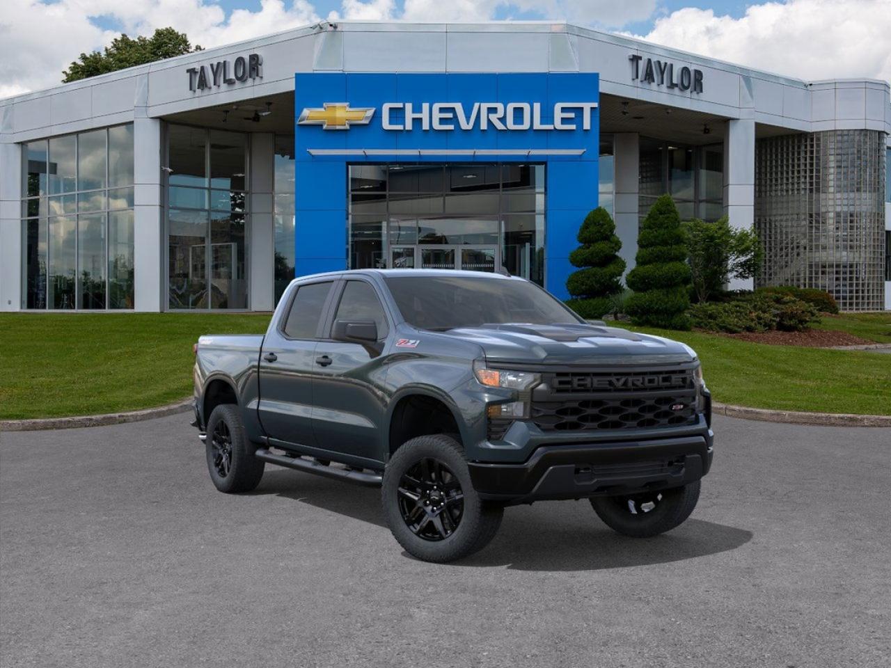 Off-Road Package, Trailering Package, Aluminum Wheels, Remote Start, Automatic Emergency Braking! Hello. This cypress gry Crew Cab 4X4 pickup has an automatic transmission and is powered by a 310HP 2.7L 4 Cylinder Engine. Our Silverado 1500's trim level is Custom Trail Boss. Standard features include off-road equipment including uprated shocks, skid plates and a heavy duty air filter, trailering package, remote start, aluminum wheels, hitch guidance, a power locking EZ lift tailgate, and a 7-inch infotainment display with Apple CarPlay and Android Auto. Safety features also include lane keep assist with lane departure warning, following distance indication, forward collision alert, and automatic emergency braking with front pedestrian braking. This vehicle has been upgraded with the following features: Off-road Package, Trailering Package, Aluminum Wheels, Remote Start, Automatic Emergency Braking, Lane Keep Assist, Lane Departure Warning. To apply right now for financing use this link : https://www.taylorautomall.com/finance/apply-for-financing/ See dealer for details. HST, licensing, and Federal luxury tax (if applicable) are extra. Come by and check out our fleet of 70+ used cars and trucks and 170+ new cars and trucks for sale in Kingston. o~o