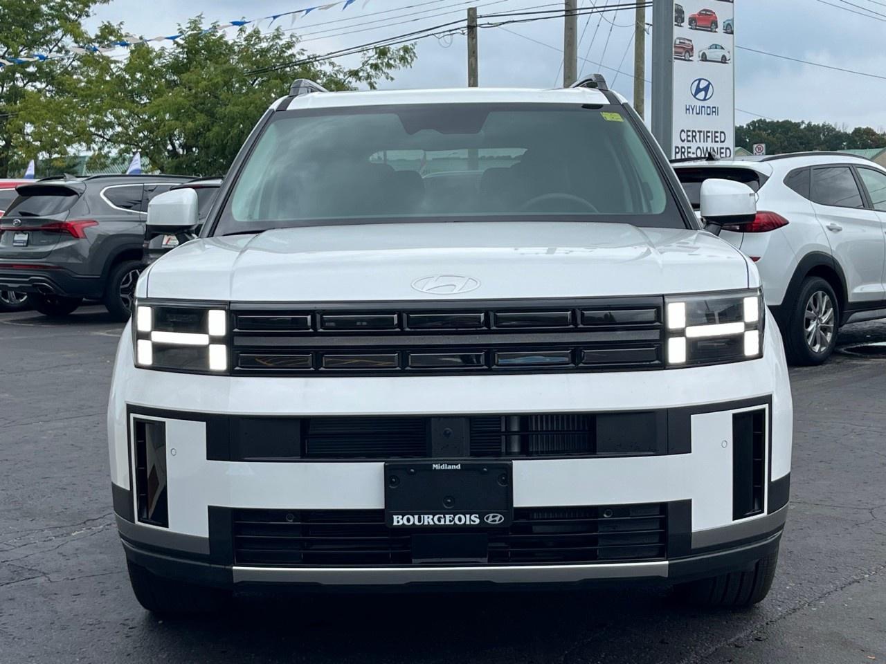 The 2025 Hyundai Santa Fe Luxury AWD is a remarkable combination of elegance and performance. With its white exterior and sophisticated black interior, this SUV delivers in both style and comfort. Whether driving in the city or exploring rugged terrains, its AWD system and agile handling offer unmatched confidence on any road.