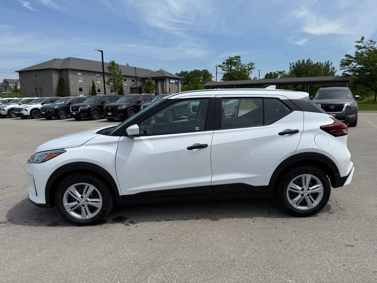 The all-new 2025 Nissan Kicks Play S in a sophisticated white exterior paired with a front-wheel-drive system ensures agile handling for urban and highway journeys alike. This sporty SUV is designed to impress with its modern lines and compact build, making it an excellent choice for navigating city streets.