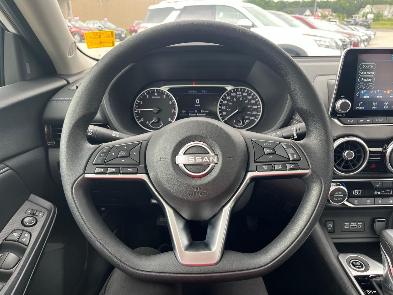 With its elegant silhouette, this sedan stands out with refined details and sleek alloy wheels. Step inside to find a sophisticated black interior, equipped with convenient features such as air conditioning, power windows, and heated front seats to ensure comfort in any weather. The Sentra SV also features heated mirrors, perfect for those frosty mornings.