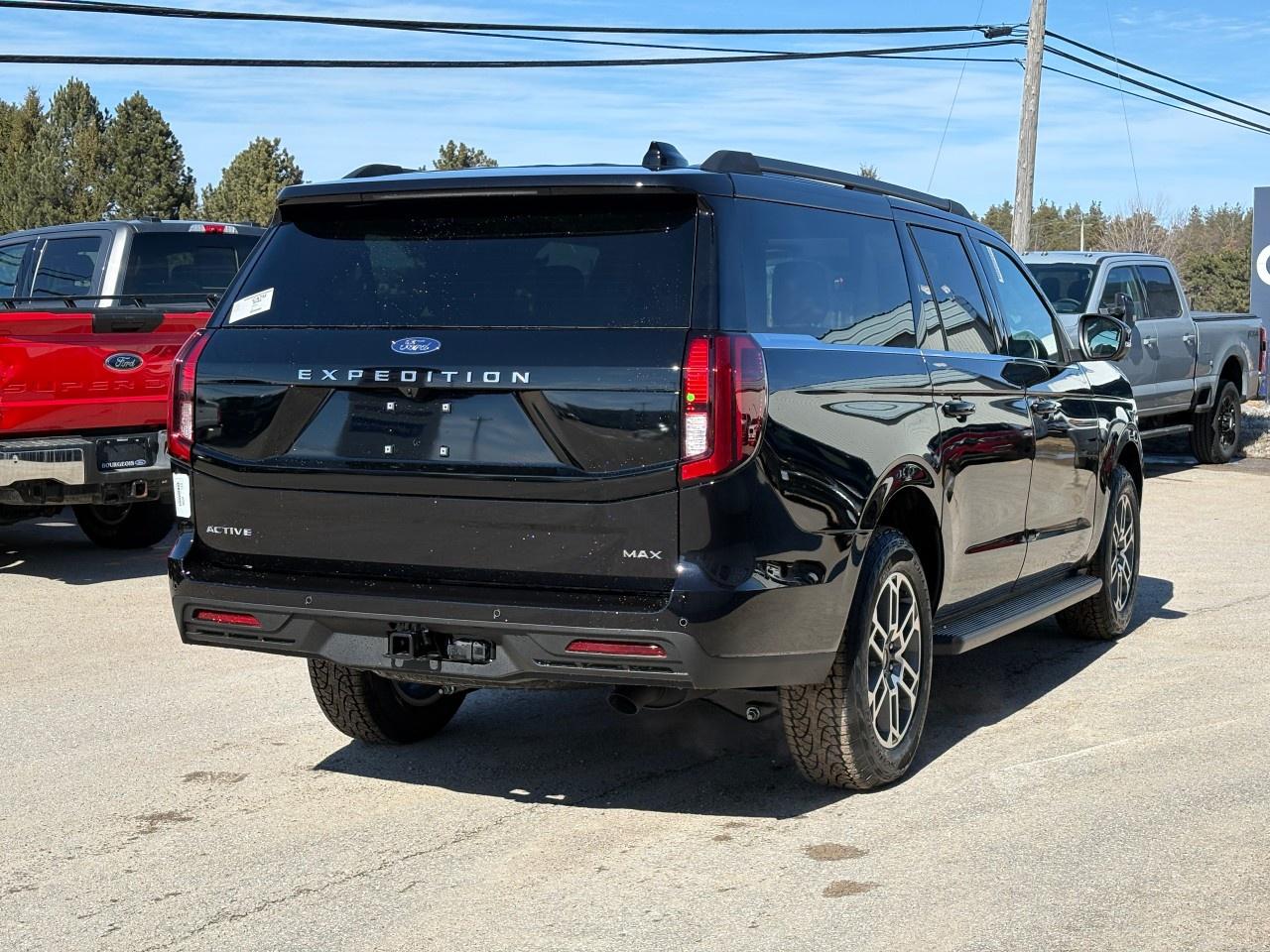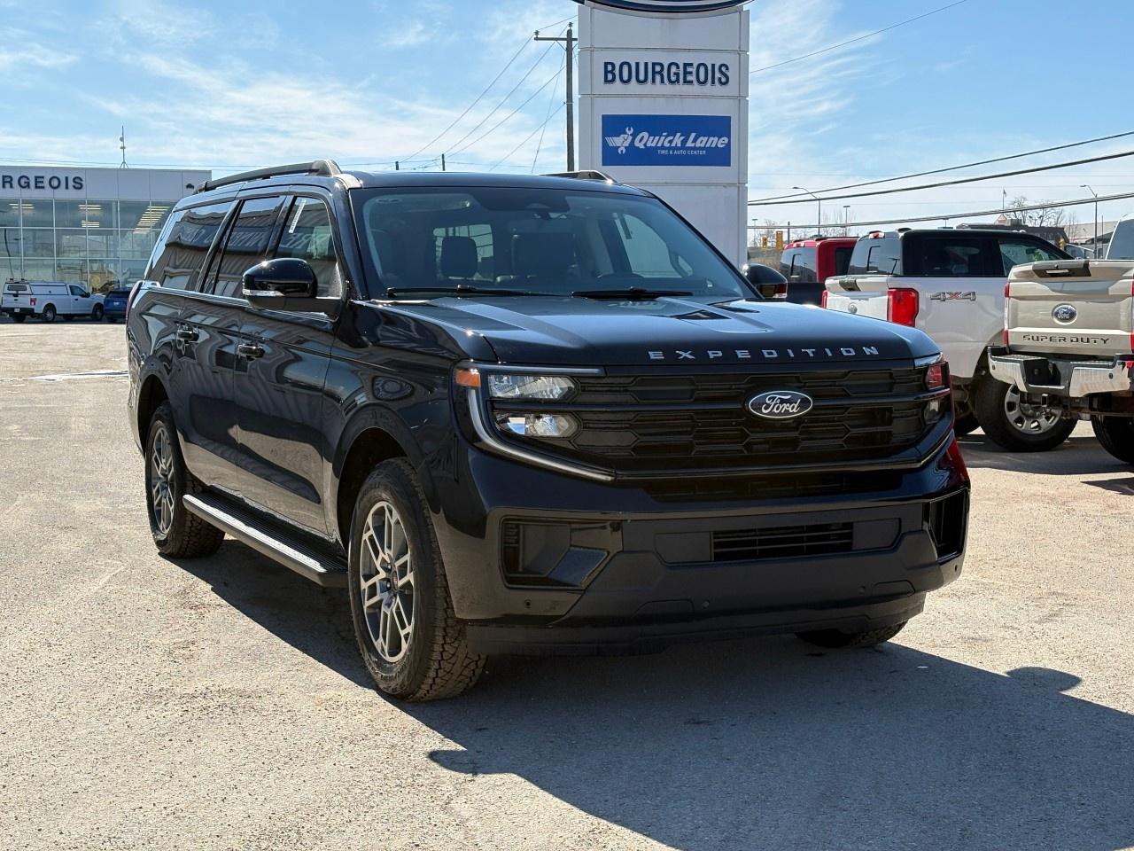 The 2026 Ford Expedition Active Max 4x4 in a striking black exterior and gray interior offers unparalleled drive and handling with its robust 4x4 drivetrain and automatic transmission. Experience the blend of comfort and rugged performance ideal for any journey.
