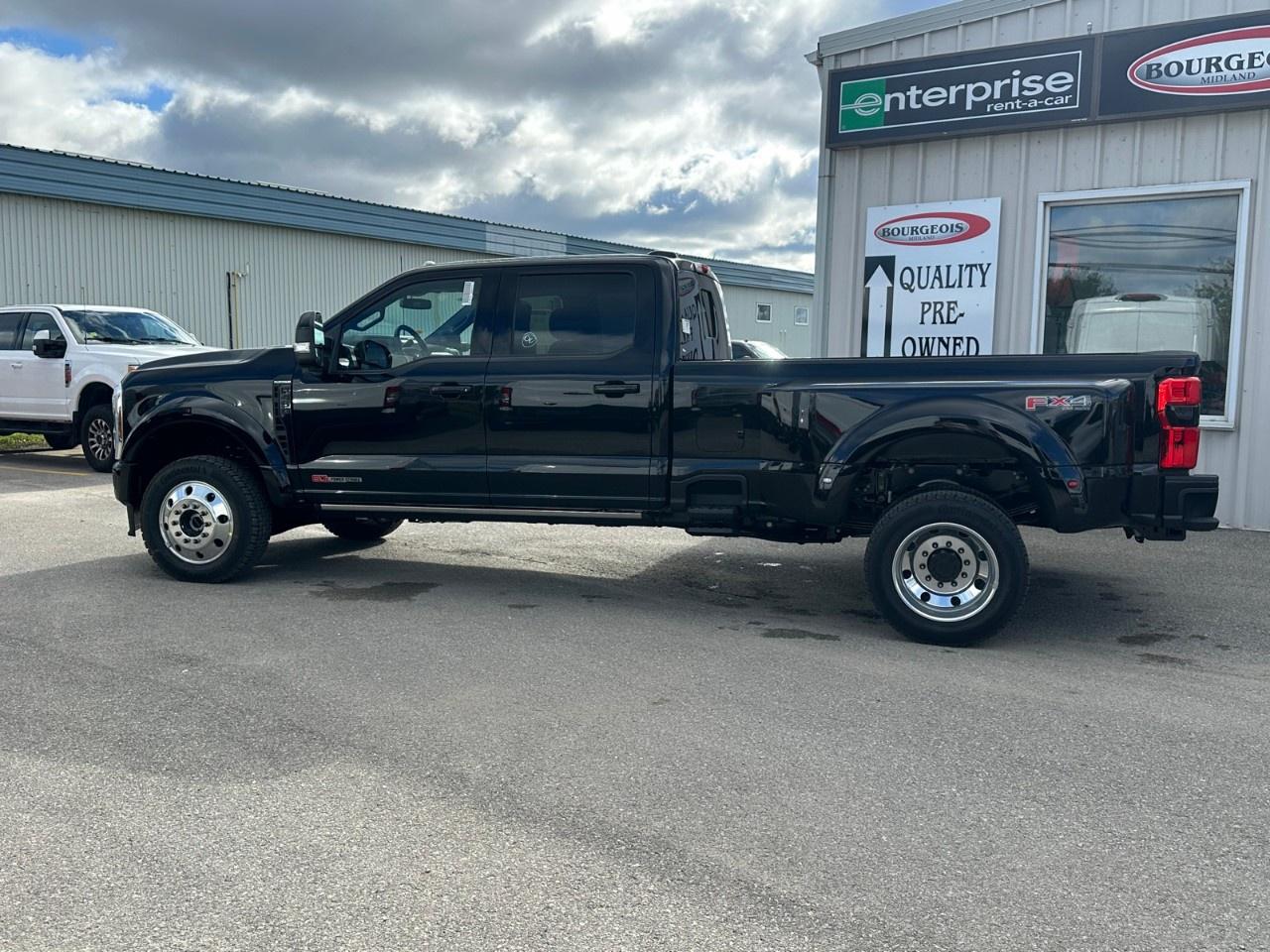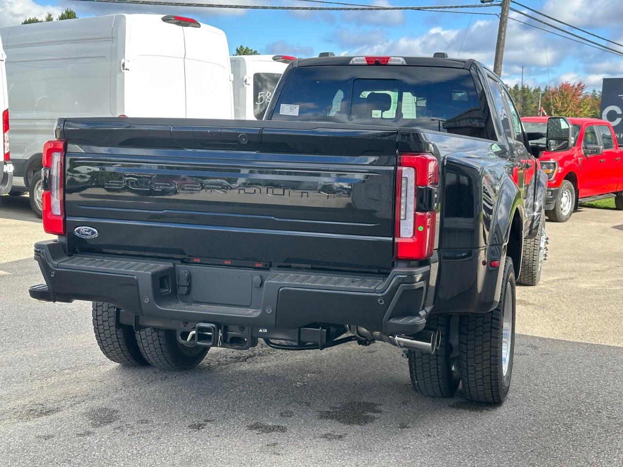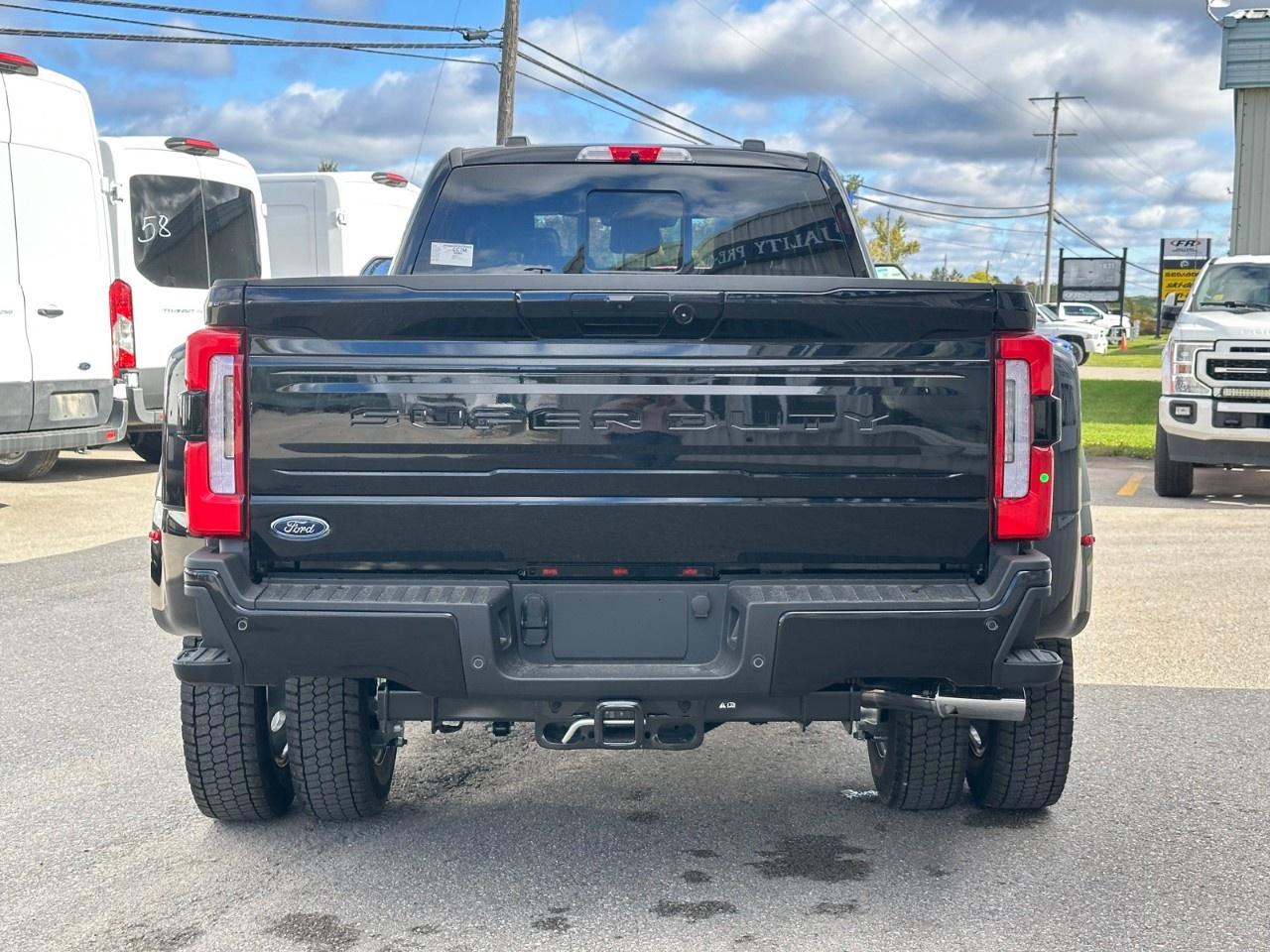 The 2026 Ford Super Duty F-450 DRW Platinum is a striking black truck with a formidable 4×4 drivetrain designed to handle any terrain you encounter with the utmost confidence. This brand-new vehicle boasts exceptional power, driven by its robust 6.7L 8-cylinder engine paired with a smooth automatic transmission.