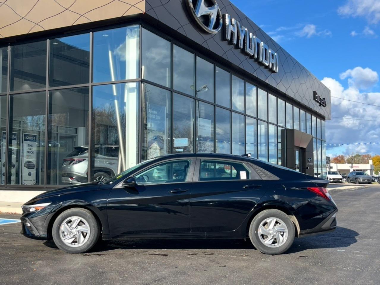 Introducing the stunning 2026 Hyundai Elantra Essential in elegant black with front-wheel drive, engineered for smooth and confident handling. This sedan promises both style and reliability. Its sophisticated exterior is perfectly complemented by equally stylish black interiors, offering a comfortable and inviting cabin environment.