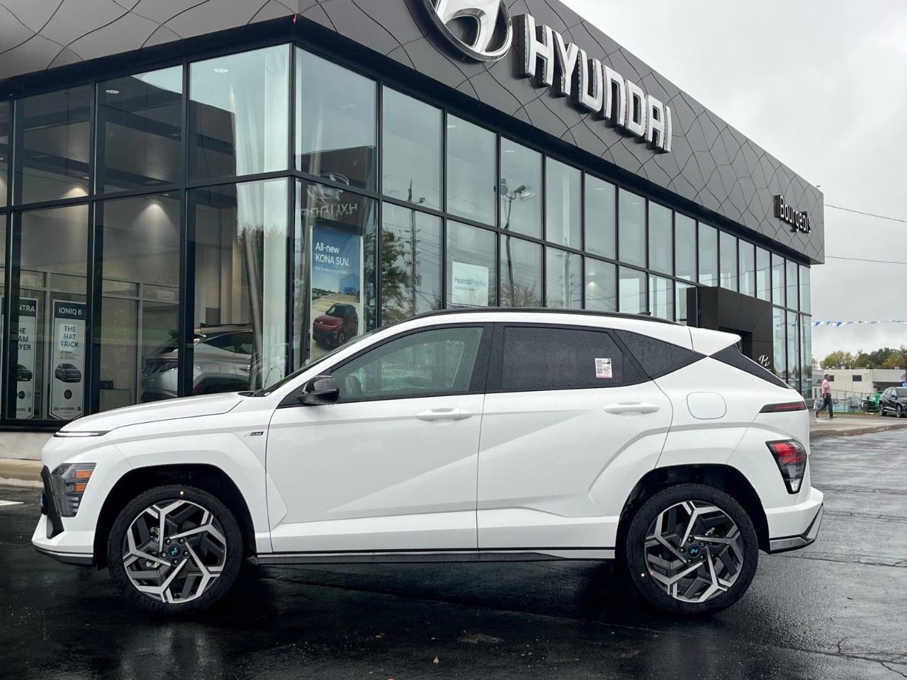 Meet the new 2026 Hyundai Kona N Line, an impressive display of modern performance and aesthetics. In a striking white color, accentuated by alloy wheels, this SUV is designed for confidence and control with its AWD drivetrain and agile handling. Ideal for those who crave both comfort and style, the Kona N Line offers a seamless blend of performance powered by its 1.6L 4-cylinder engine and smooth automatic transmission.