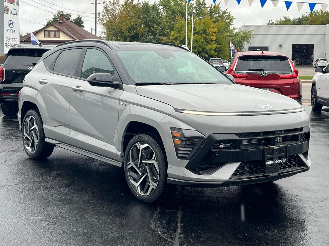 Witness the stunning new 2026 Hyundai Kona N Line Ultimate in its sophisticated gray attire. With an efficient AWD drivetrain and a robust 1.6L 4-cylinder engine outputting 190 RPM at 6000, this automatic transmission SUV is engineered for both power and grace in handling.