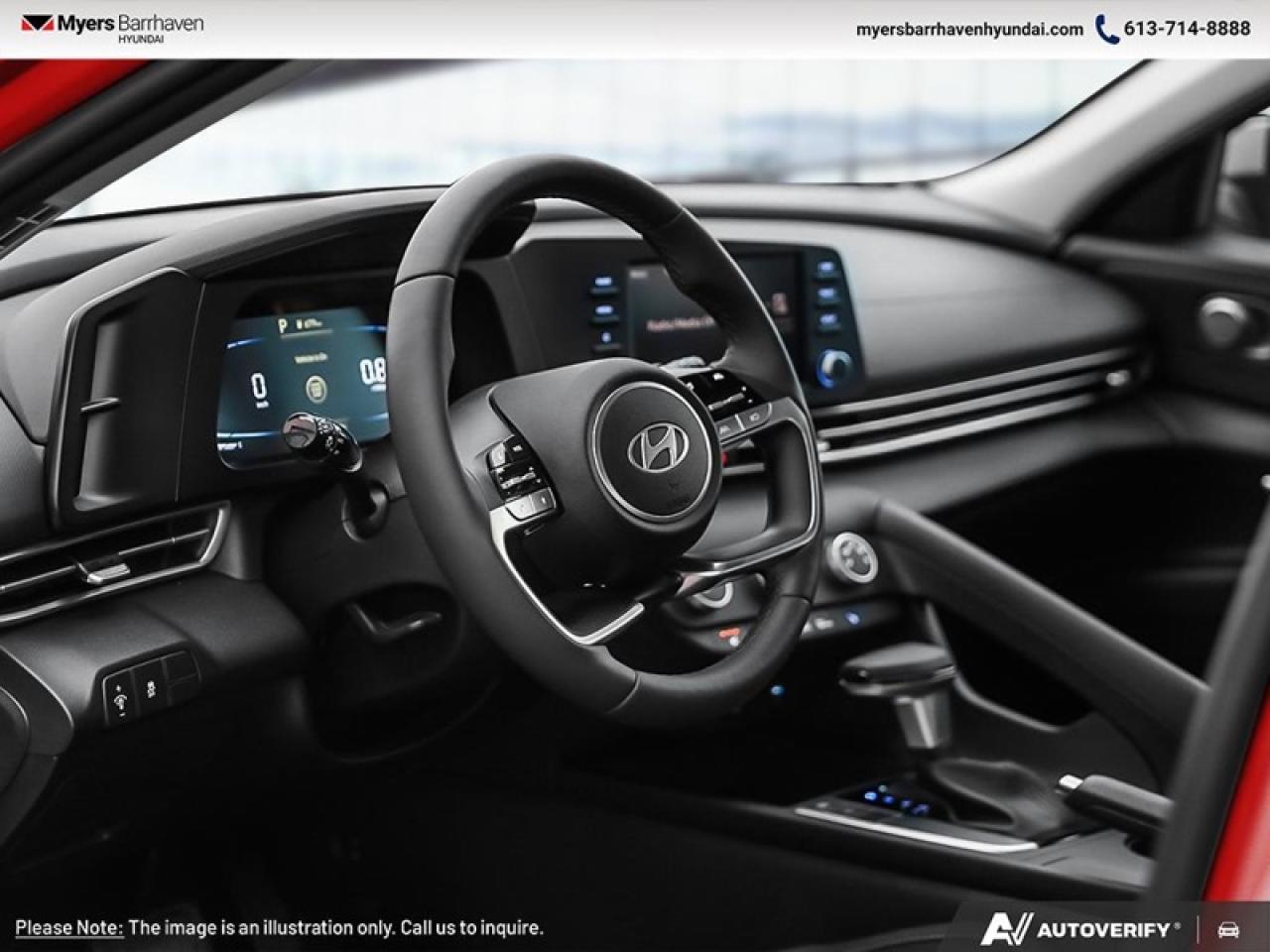 Our Elantra's trim level is Preferred. The cabin prioritizes comfort and intuitive usability with heated front bucket seats, premium tricot cloth upholstery, a heated leather steering wheel, and a 6-way adjustable driver seat with height adjustment. Everyday operation feels streamlined through proximity key entry with push button start, smart trunk proximity access, power windows with driver one-touch up/down, cruise control, and well-organized storage including a full floor console and front center armrest. Technology is centered on an 8 inch display audio system with wireless Android Auto, Apple CarPlay, Bluetooth with voice recognition, USB connectivity, smart device integration and two front LCD monitors. A redundant digital speedometer, trip computer, driver information center and key fob remote start further enhance daily convenience. Safety is comprehensive with forward collision avoidance assist with pedestrian detection, blind spot collision warning, rear cross-traffic collision avoidance assist, lane keeping assist, lane follow assist, a full suite of front, side and curtain airbags including rear side-impact coverage, stability and traction control, tire pressure monitoring, driver monitoring alert, child safety locks and a back up camera. This vehicle has been upgraded with the following features: Heated Seats, Heated Steering Wheel, Blind Spot Warning, Remote Start, Lane Keep Assist, Collision Mitigation.