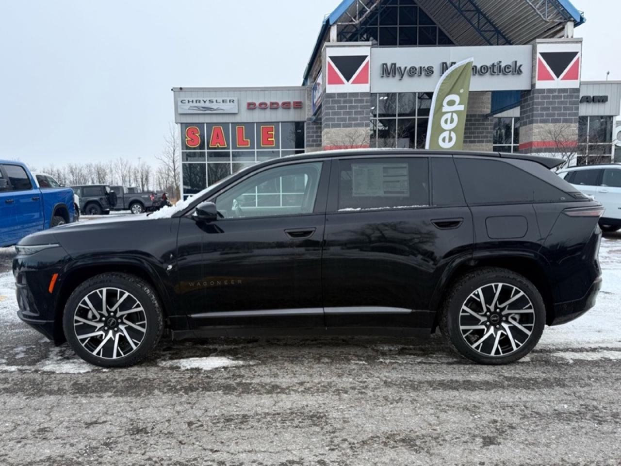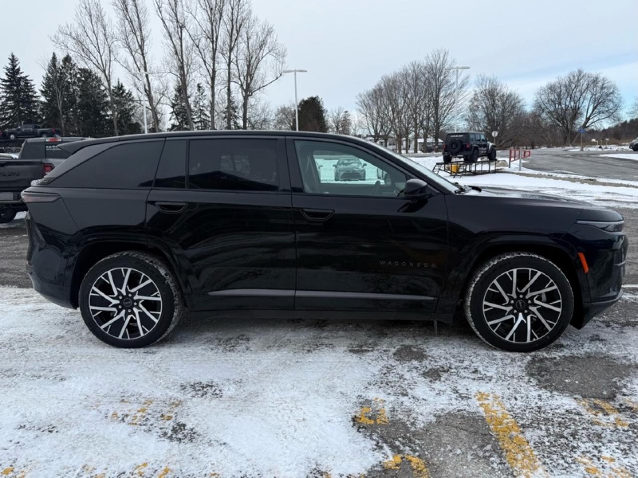 Our Wagoneer S's trim level is Limited. Sleek body-coloured bumpers and chrome accents give this SUV a commanding and modern presence on the road. A panoramic sunroof overlooks the plush interior, which offers heated and ventilated front seats, a heated leatherette steering wheel, piano black trim, and refined ambient lighting that enhances every drive. The advanced infotainment system features a 12.3-inch touchscreen with integrated navigation, wireless phone connectivity, a premium 10-speaker audio system, and adaptive cruise control with stop-and-go capability for effortless travel. Safety features include Active Driving Assist, Blind Spot Detection, ParkSense front and rear sensors, an aerial view camera system, and Full-Speed Forward Collision Warning Plus, providing confidence and peace of mind on every journey. This vehicle has been upgraded with the following features: Sunroof, Navigation, Cooled Seats, Heated Steering Wheel, Power Liftgate, Adaptive Cruise Control, Remote Start.
