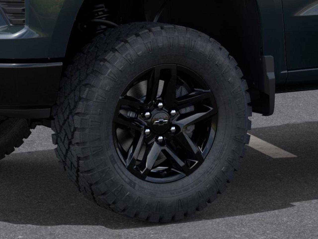 Our Silverado 1500's trim level is Custom Trail Boss. Standard features include off-road equipment including uprated shocks, skid plates and a heavy duty air filter, trailering package, remote start, aluminum wheels, hitch guidance, a power locking EZ lift tailgate, and a 7-inch infotainment display with Apple CarPlay and Android Auto. Safety features also include lane keep assist with lane departure warning, following distance indication, forward collision alert, and automatic emergency braking with front pedestrian braking. This vehicle has been upgraded with the following features: Dark Essential Package, Spray-In Bedliner, Multi-Flex Tailgate.