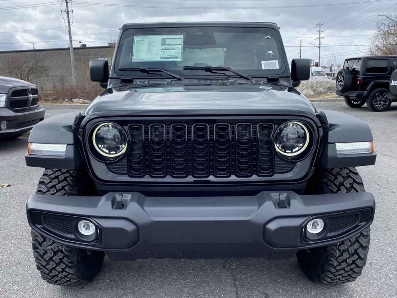 Our Wrangler's trim level is Willys. This off-road icon in the Willys trim features off-road wheels with beefier suspension, comes standard with front and rear tow hooks, front fog lamps, and a manual convertible top with fixed rollover protection. Also standard include front and rear illuminated cupholders, air conditioning, full carpet floors with all-weather mats, an 8-speaker audio system, and a 12.3-inch infotainment screen powered by Uconnect 5W, with smartphone integration and mobile hotspot internet access. Additional features include cruise control, a rearview camera, and even more. This vehicle has been upgraded with the following features: Technology Group, Freedom Top.