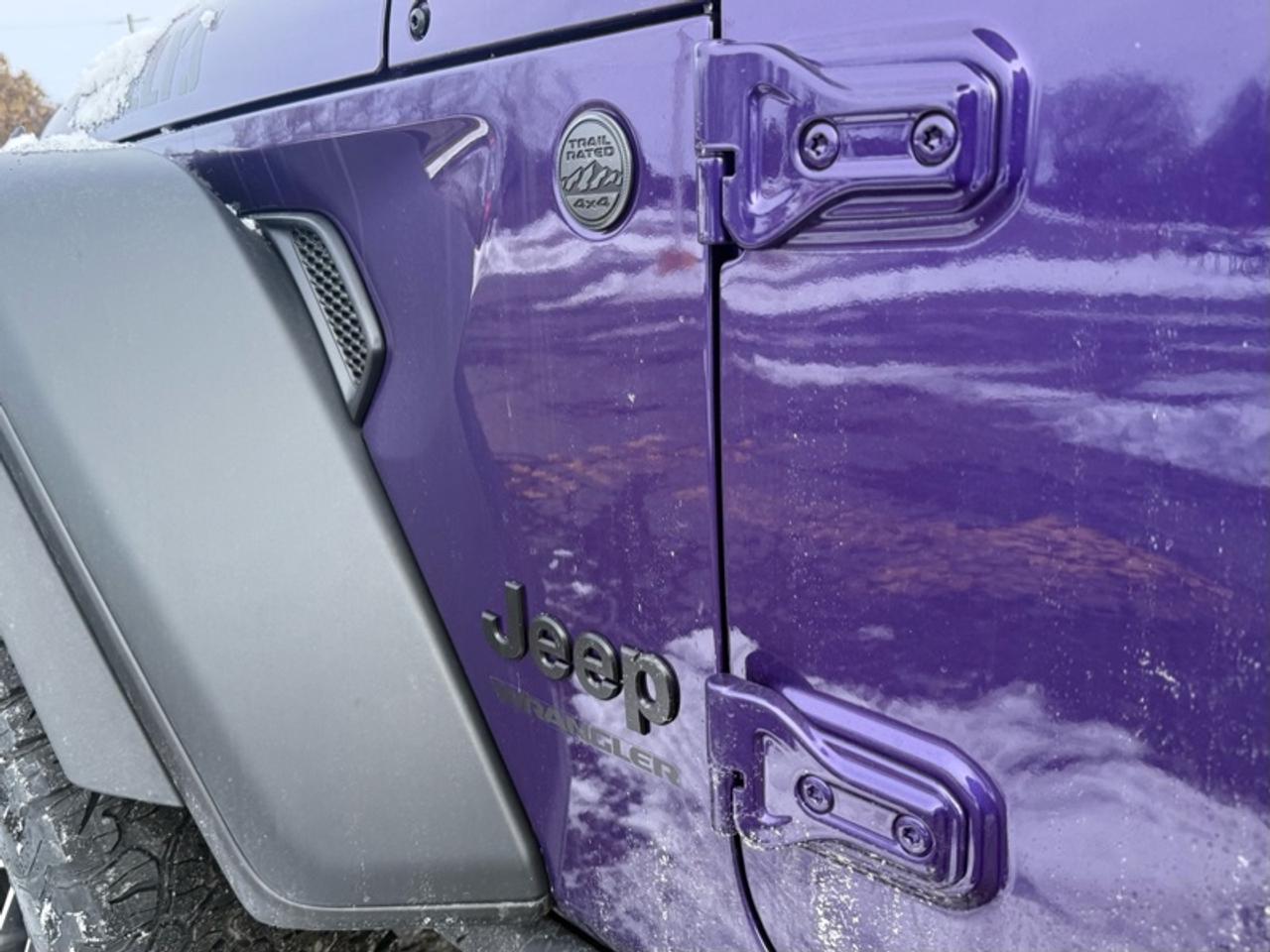 Our Wrangler's trim level is Willys. This off-road icon in the Willys trim features off-road wheels with beefier suspension, comes standard with front and rear tow hooks, front fog lamps, and a manual convertible top with fixed rollover protection. Also standard include front and rear illuminated cupholders, air conditioning, full carpet floors with all-weather mats, an 8-speaker audio system, and a 12.3-inch infotainment screen powered by Uconnect 5W, with smartphone integration and mobile hotspot internet access. Additional features include cruise control, a rearview camera, and even more. This vehicle has been upgraded with the following features: Safety Group, Freedom Top.