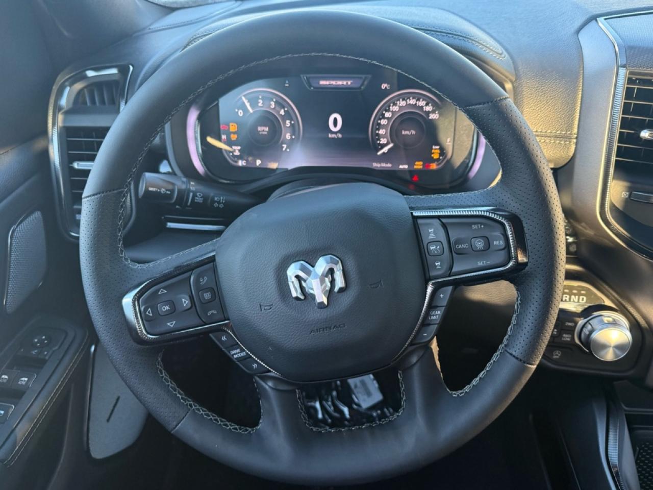 Our 1500's trim level is Sport. This Ram 1500 in Sport trim rewards you with front heated seats, a leather-wrapped heated steering wheel, a 360 camera system, a 10-speaker Alpine audio, and a 12-inch infotainment screen with inbuilt navigation, Apple CarPlay and Android Auto, and 4G LTE Wi-Fi hotspot. Additional features include class IV towing equipment, aluminum wheels, power adjustable pedals, intersection collision assist, evasion assist, lane keep assist with lane departure warning, and even more! This vehicle has been upgraded with the following features: Leather Seats, Night Edition, Sport Performance Hood.