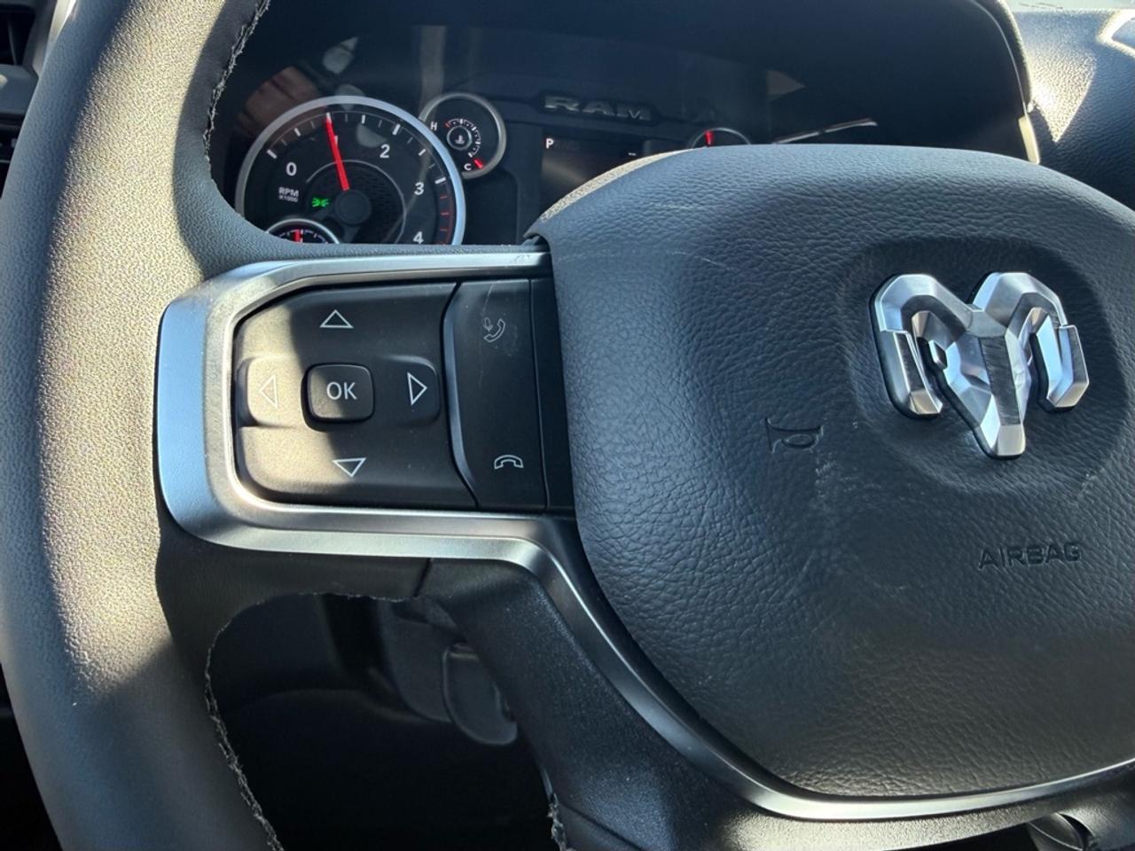 Our 2500's trim level is Big Horn. Standard features include class V tow equipment with a hitch, brake controller and trailer sway control, heated power-adjustable mirrors, heavy duty suspension, mobile hotspot internet access, adaptive cruise control, and an 8.4-inch infotainment screen powered by Uconnect 5, with Apple CarPlay and Android Auto. Safety features also include ParkSense front and rear parking sensors, forward collision warning and front collision mitigation. This vehicle has been upgraded with the following features: Diesel Engine, Night Edition, Heated Seats, Heated Steering Wheel, Clearance Lamps.