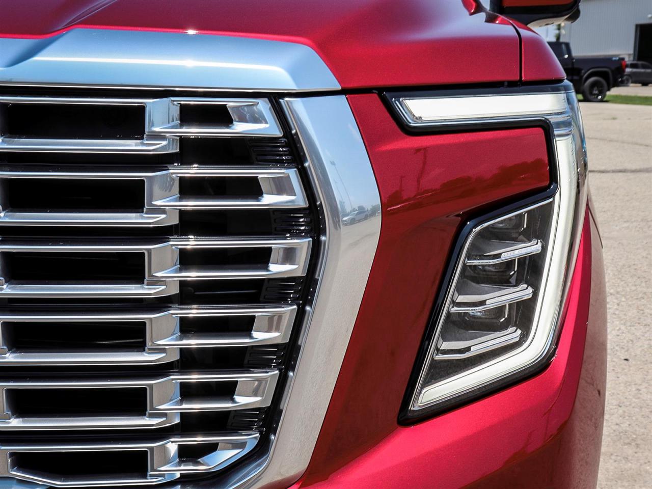 Wrapped in a stunning Volcanic Red Tintcoat finish, the Yukon Denali is not only a sight to behold but also a quintessential representation of GMC's commitment to rugged sophistication. The bold exterior lines and sculpted profile exude confidence, while the LED lighting and chrome accents add a touch of elegance and modern flair.