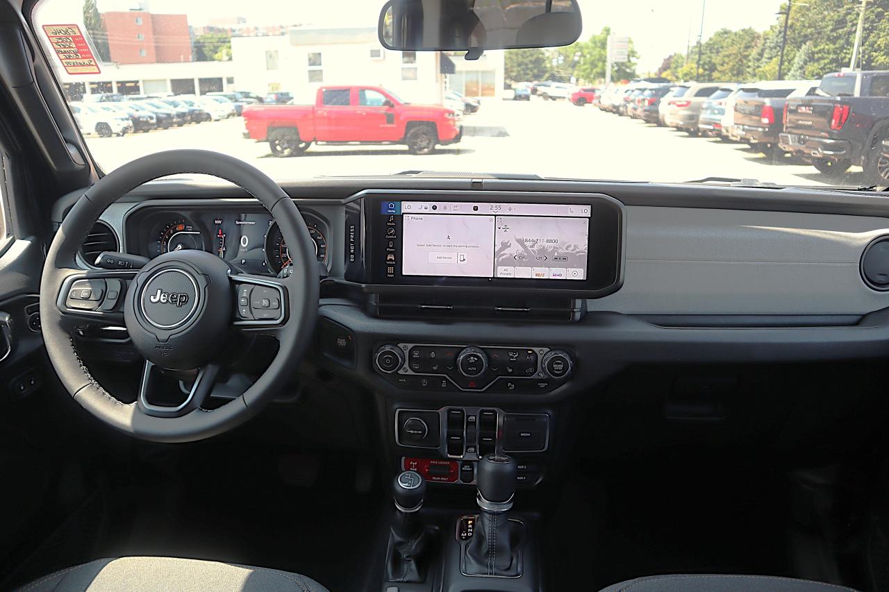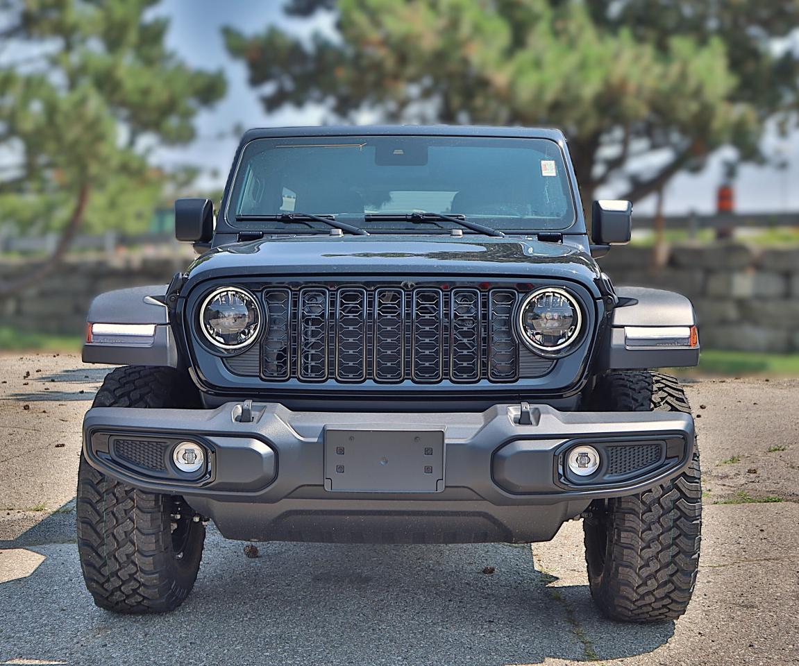 Conquer the road in our New 2025 Jeep Wrangler Willys 4 Door 4X4 with the Convenience Pack displayed in Black! Driven by a 3.6 Litre Pentastar V6 supplying 285hp to an 8 Speed Automatic transmission with an Off-Road Plus mode for enhanced trail performance. Dana axles and an electronic locking rear differential help you conquer almost any conditions, and this Four Wheel Drive SUV returns approximately 10.2L/100km on the highway. Eye-catching Willys hood graphics help our Wrangler grab attention with LED lighting, fog lamps, alloy wheels, fender flares, a sport bar, and a fantastic open-air driving experience when you drop the top, fold down the Gorilla Glass windshield, and remove the doors! Thanks to our Convenience Pack, you can feel good with the top up or down in our Willys cabin. It bundles heated cloth seats, a heated-wrapped steering wheel, automatic climate control, remote start, and a 7-inch driver display for better driving. Uconnect technology powers your infotainment system to enjoy a 12.3-inch touchscreen, 3.5-inch driver display, Apple CarPlay®, WiFi compatibility, Android Auto®, Bluetooth®, and an eight-speaker audio system. Stay safe as you dominate your days, knowing Jeep has your back with automatic braking, adaptive cruise control, a rearview camera, forward collision warning, trailer sway damping, hill start assistance, and more. The world awaits, and our Wrangler Willys is ready to go! Save this Page and Call for Availability. We Know You Will Enjoy Your Test Drive Towards Ownership!