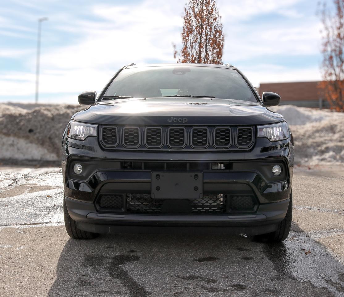 Built for modern exploration, our New 2026 Jeep Compass North 4X4 Altitude Special Edition in Diamond Black Crystal Pearl integrates advanced safety systems, intuitive connectivity, and practical everyday efficiency. Motivated by a TurboCharged 2.0 Litre 4 Cylinder providing 200hp to an 8 Speed Automatic transmission with multiple terrain modes so you can explore your way. Also nimble and easy to maneuver in town or on the trail, this Four Wheel Drive achieves approximately 7.4L/100km on the highway. Our Compass showcases modern Jeep styling with signature lighting, rugged body cladding, gloss black grille surround, 18-inch Gloss Black-painted alloy wheels, and power-adjustable mirrors that enhance its bold presence. Our North cabin is thoughtfully equipped for daily travel with supportive cloth seating, a multifunction steering wheel, automatic climate control, cruise control, pushbutton ignition, keyless entry, a digital driver display, and generous storage space. Uconnect® technology anchors a 10.1-inch touchscreen with Apple CarPlay®, Android Auto®, Bluetooth® connectivity, available WiFi services, and an integrated audio system. Another Jeep advantage is its sophisticated safety technology. You can feel well protected knowing blind-spot monitoring, hill-start assist, automatic braking, active lane management, a rearview camera, forward collision warning, a driver attention monitor, tire pressure monitoring, and more. Our Compass North is a compact SUV leader with features like those! Save this Page and Call for Availability. We Know You Will Enjoy Your Test Drive Towards Ownership!