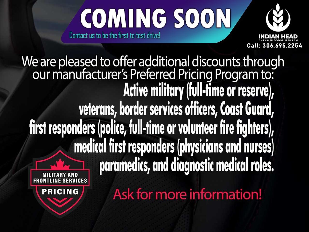 Please confirm all vehicle details and features with our sales team and start the buying process today at Indian Head Chrysler Dodge Jeep Ram Ltd.