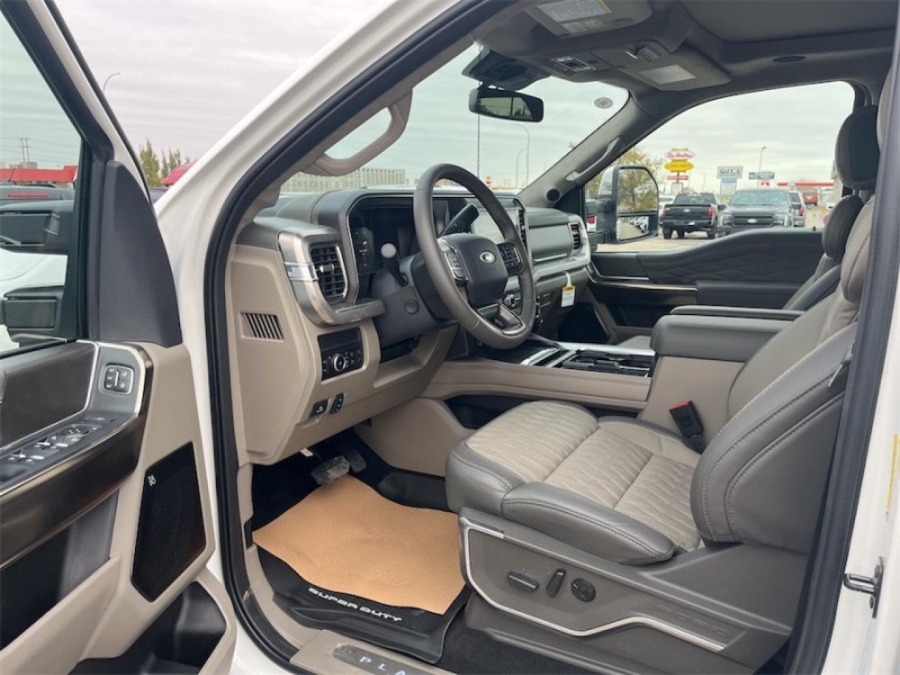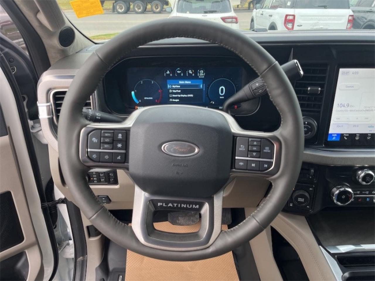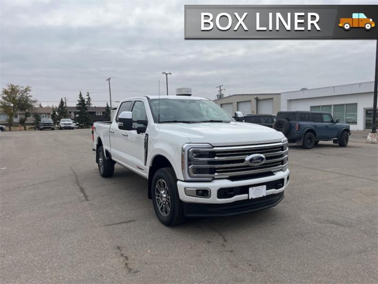 Our F-350 Super Duty's trim level is Platinum. This F-350 Platinum is embellished with chrome exterior accents and unique exterior styling, with power running boards, adaptive cruise control, a driver's heads-up display and retractable rear steps, along with Platinum-themed leather-trimmed heated and ventilated front seats with power adjustment, memory function and lumbar support, a heated leather-wrapped steering wheel, voice-activated dual-zone automatic climate control, power-adjustable pedals, a sonorous 8-speaker Bang & Olufsen audio system, and two 120-volt AC power outlets. This truck is also ready to get busy, with equipment such as class V towing equipment with a hitch, trailer wiring harness, a brake controller and trailer sway control, beefy suspension with heavy duty shock absorbers, power extendable trailer style mirrors, up-fitter switches, and LED headlights with front fog lamps and automatic high beams. Connectivity is handled by a 12-inch infotainment screen powered by SYNC 4, bundled with Apple CarPlay, Android Auto, inbuilt navigation, and SiriusXM satellite radio. Safety features also include lane keeping assist with lane departure warning, a surround camera system, pre-collision assist with automatic emergency braking and cross-traffic alert, blind spot detection, rear parking sensors, forward collision mitigation, and a cargo bed camera. This vehicle has been upgraded with the following features: FX4 Off-Road Package, 20 inch Aluminum Wheels, Spray-in Bedliner.